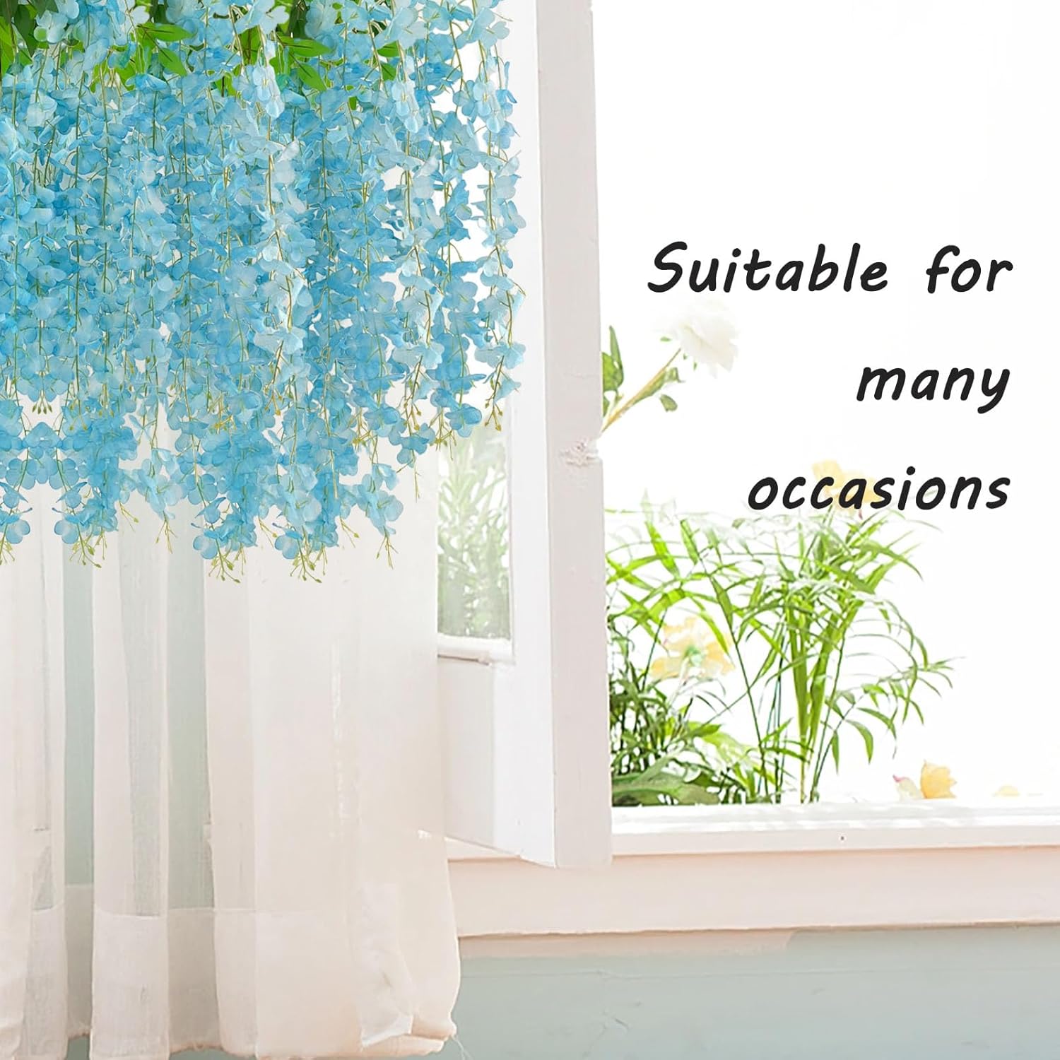 12 Pack Lake Blue Wisteria Hanging Flowers Garland, 3.77 Feet Artificial Flower Vines, Fake Wisteria, Artificial Vines Hanging Garland for Backdrop Outdoor Yard Garden Decor