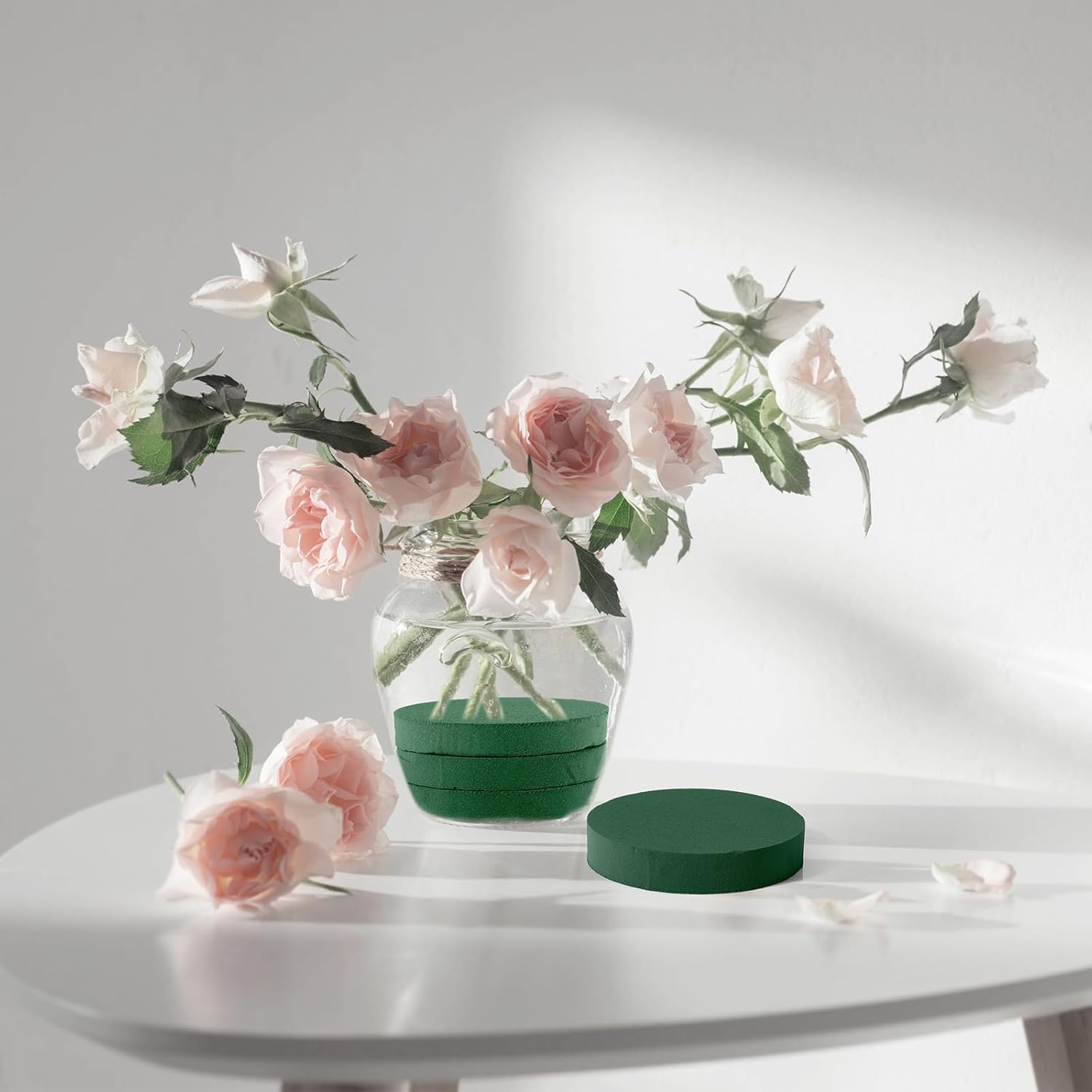 Frienda 6 Pieces Floral Foam Blocks for Artificial Flowers,Thanksgiving Christmas Party Supplies, Dry & Wet Floral Foam Round Kit for Flower Arrangement Wedding Decoration(8 x 1.57 Inch)