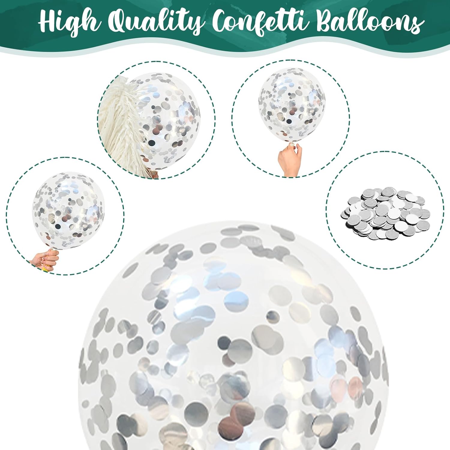 - 🎉 Easy to Use - The teal blue green and silver balloons support both air and helium. You can blow them up with a mouth, pump or helium. After inflating, shake the confetti balloon and gently rub it with your hair or dry fabric to make the confetti stick to the side of the balloon, which can make the balloon look more beautiful. When the party is over, you can pop the balloons to let the confetti fall, adding fun to the party.