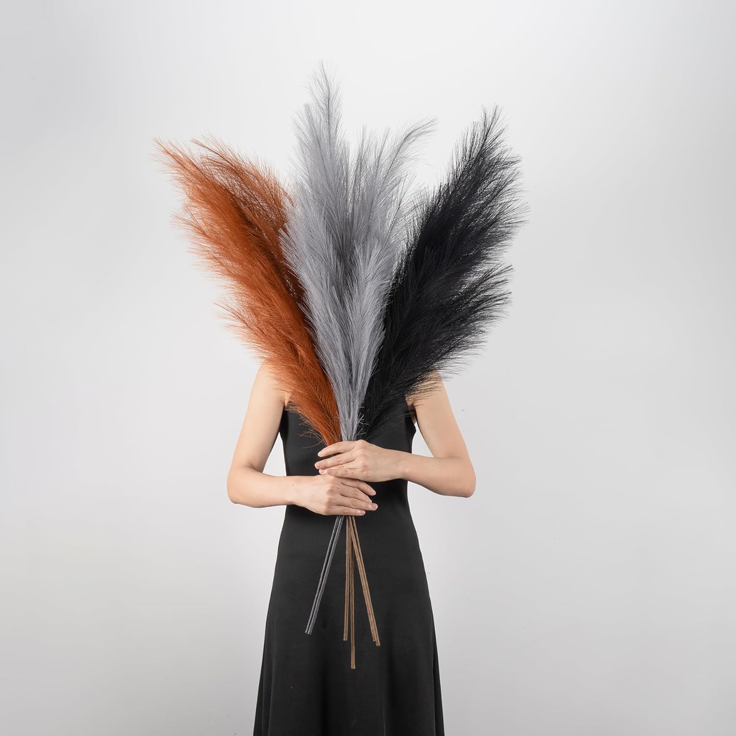 - Warm Color& Good Texture Pompous Grass: It comes with 6 long stems of extra fluffy and tall faux pampas grass They're nice and full and have a really impressive appearance, nicely with a variety of decorations! Packaging with box to avoid crushing during transit, hold their shape very well
