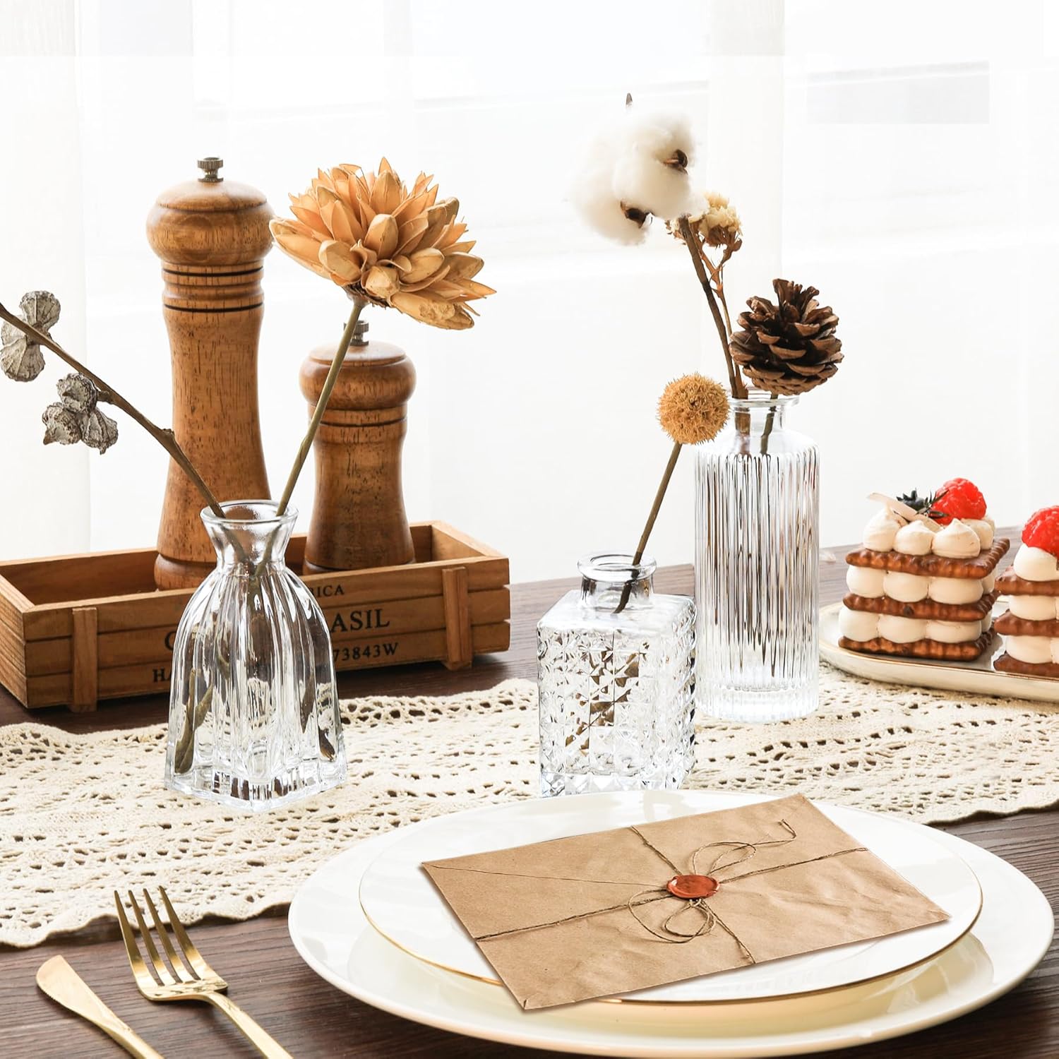 - 【About The Items】Package contents: small glass vase x 32 in 6 assorted shapes and sizes (see size chart). The bud vases in bulk features a narrow mouth that can hold 3–6 rose stems, though it’s recommended to display 1–3 small roses for the best look.