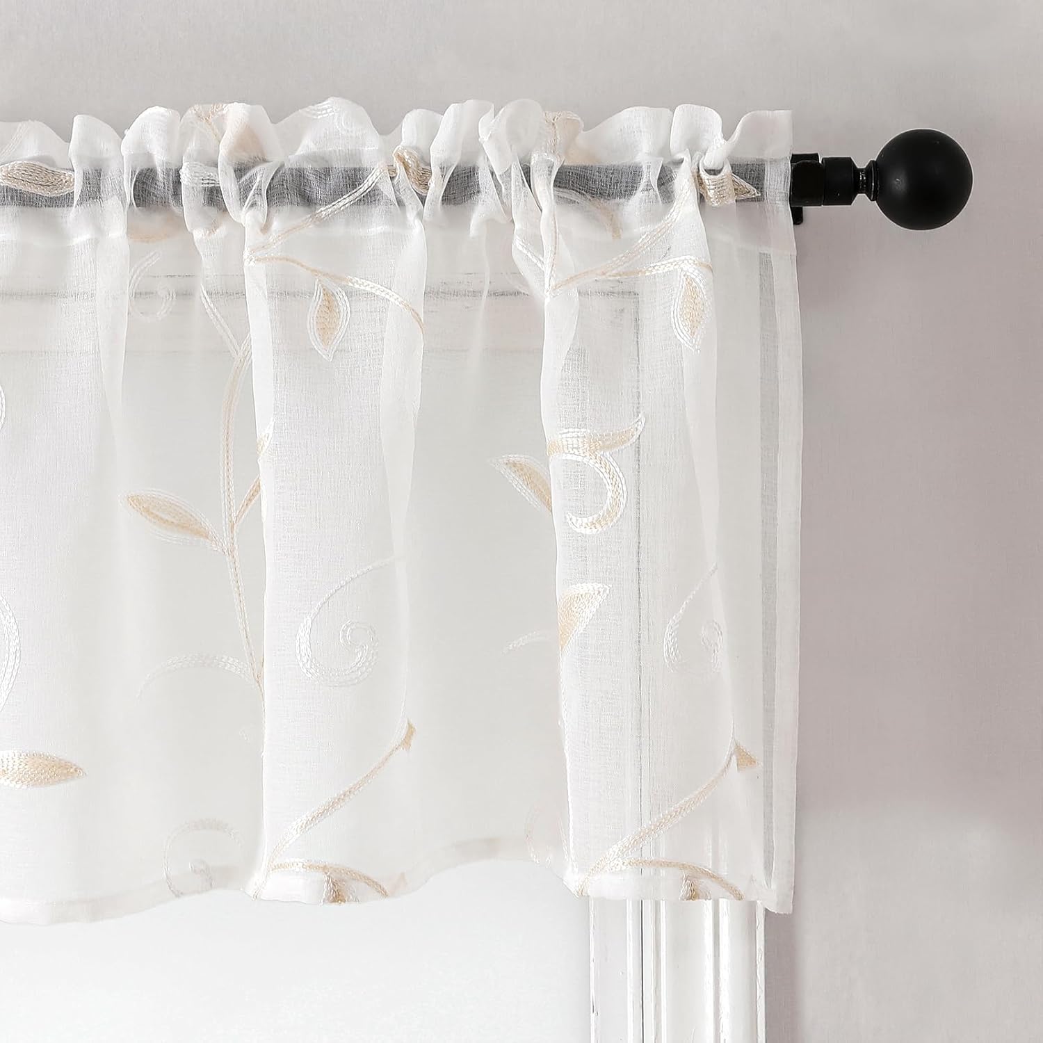 - Elegant embroidered design: Our window valance is designed with leaves embroidered pattern, add style and elegance to living space, perfect for kitchen, bedroom, living room, kids room or any window.