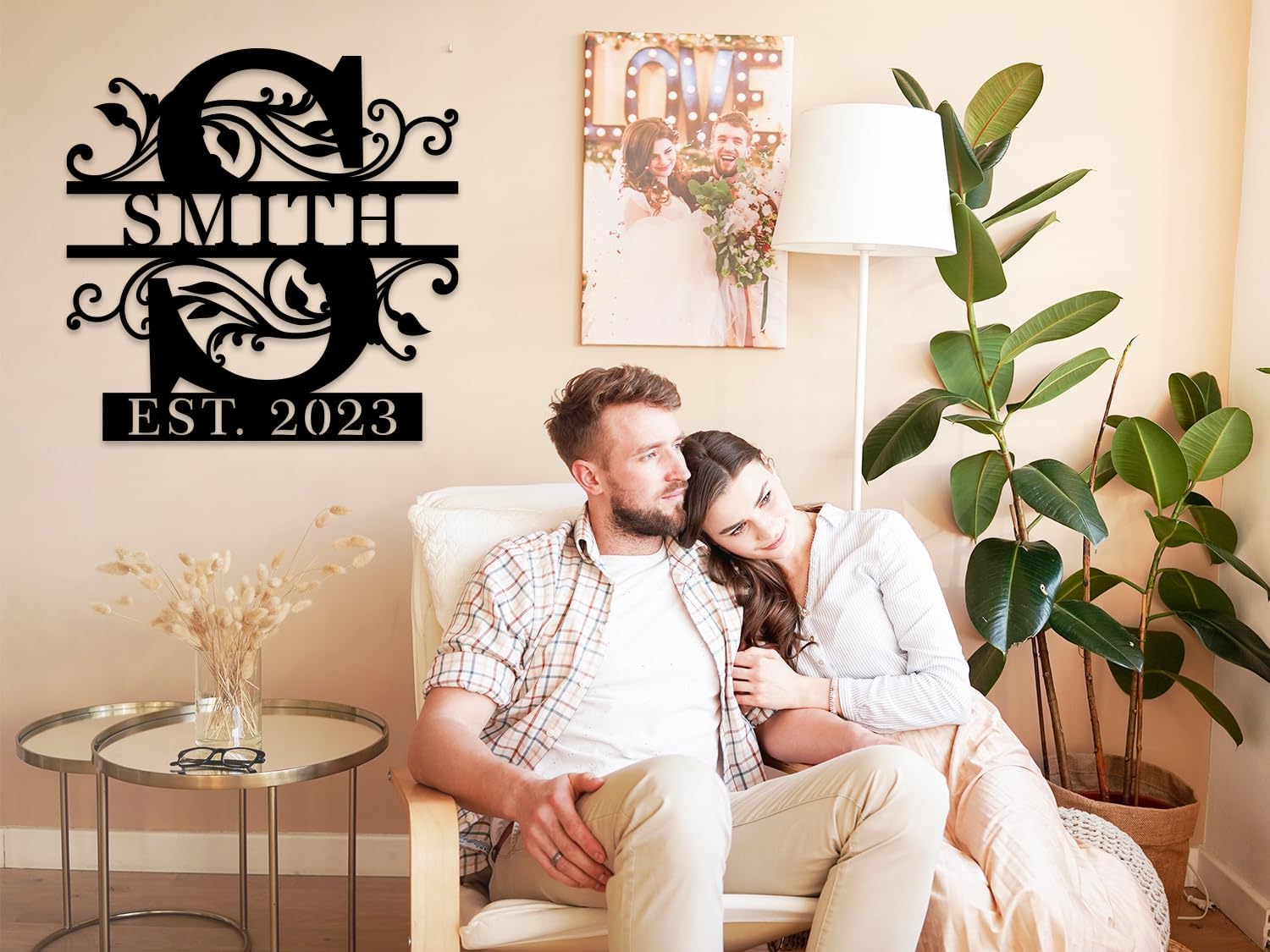- Stunning Split Letter Design: Our split letter monogram wall decor showcases your family name in a unique and eye-catching way.