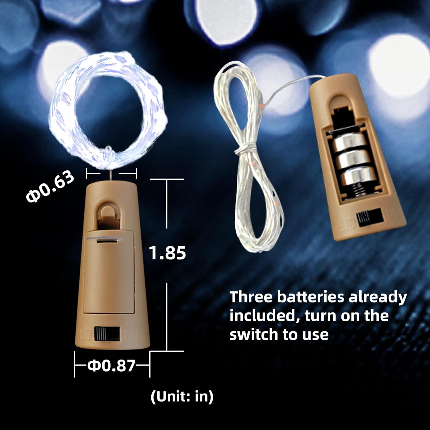 - Compatible with most bottles: Corks are suitable for openings as narrow as 0.63in and as large as 0.87in. Cork bottle lights are suitable for most bottles, including wine, beer, sparkling water, whisky, burgundy, rhine, champagne, cocktail and other types of bottles.The cork lights fit very well into wine or beer bottles,each with a small ON/OFF switch, batteries are replaceable, and no need screw driver to replace the batteries, it is very convenient for your use