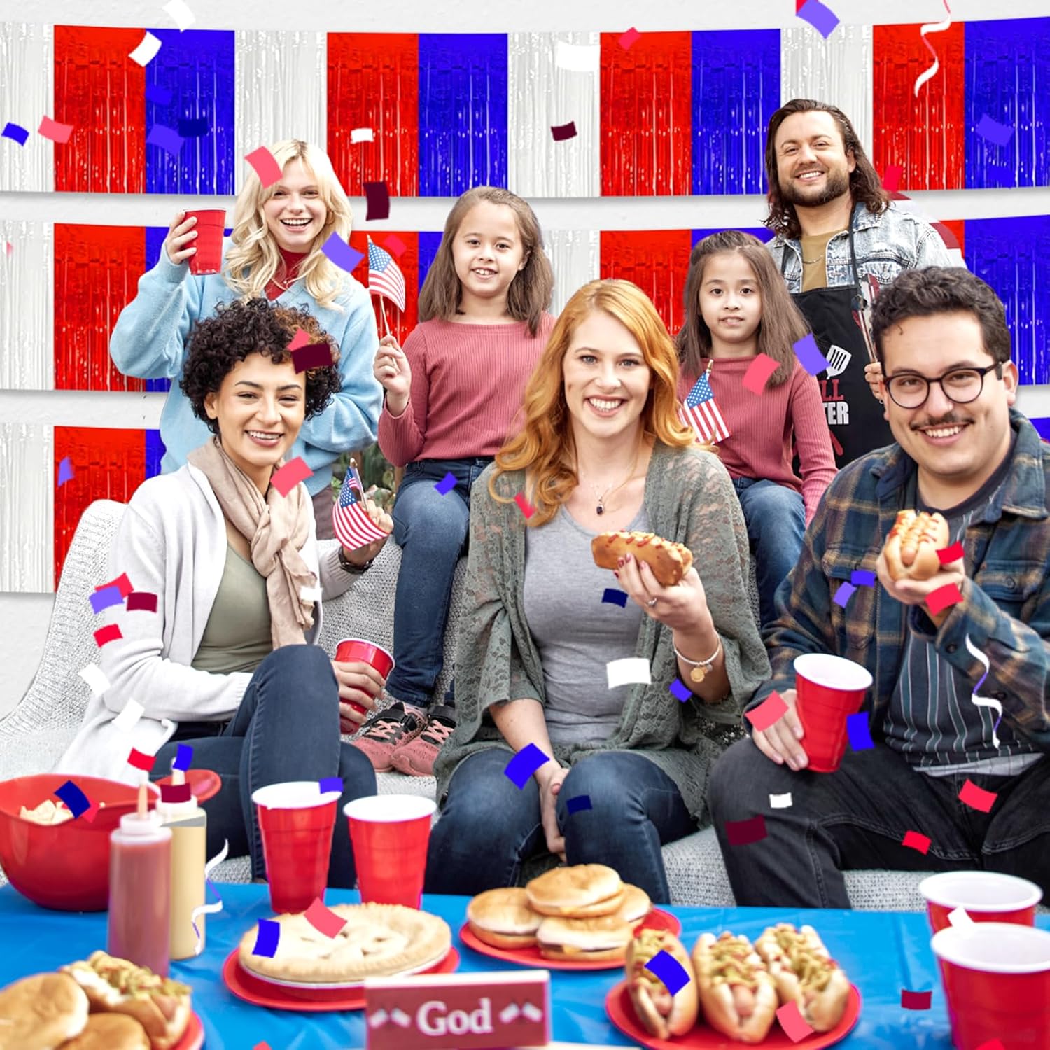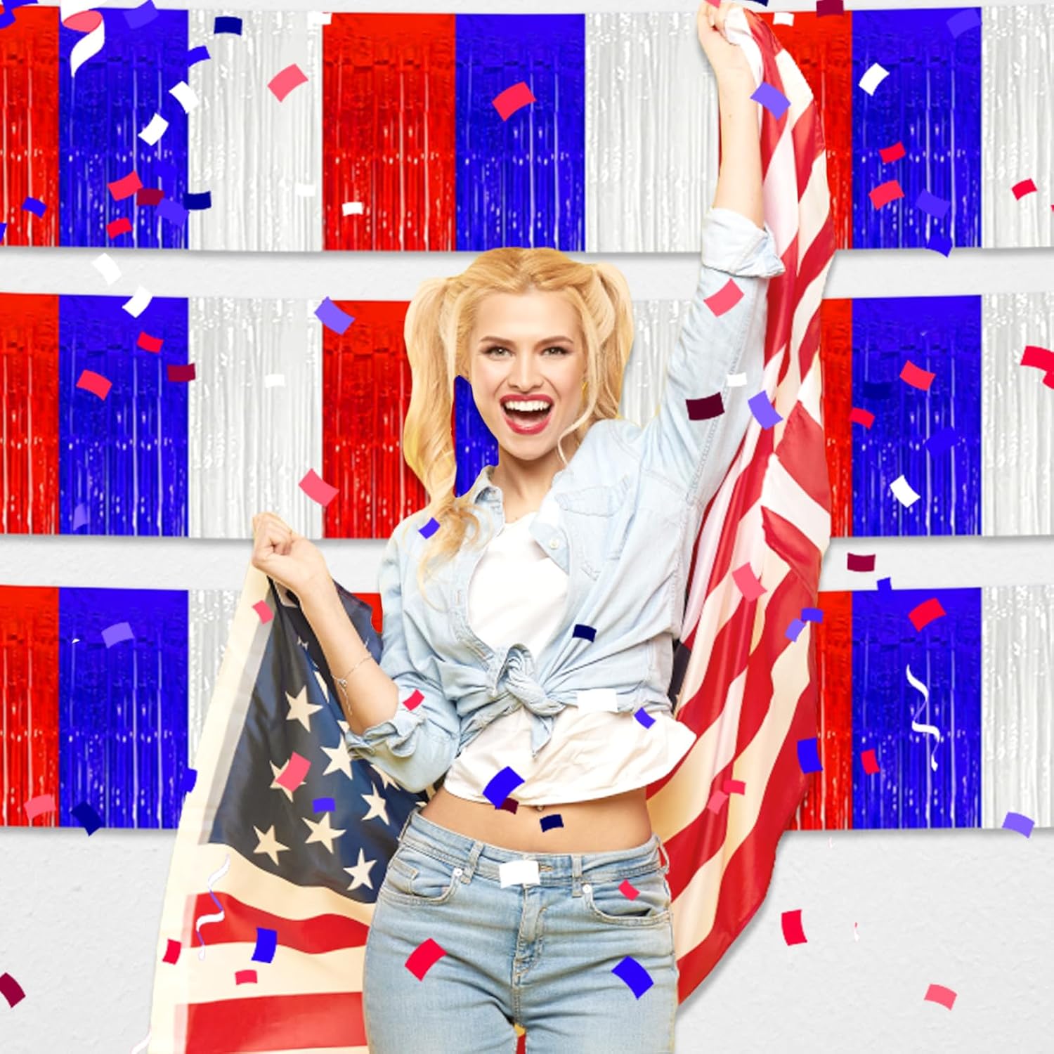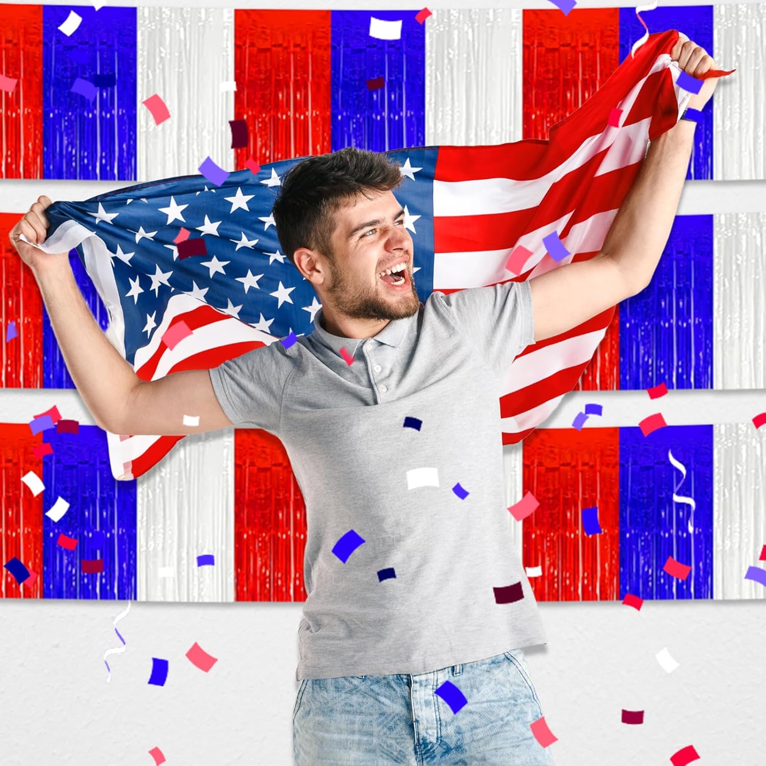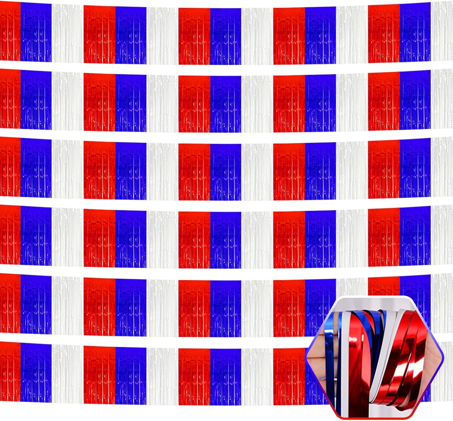 6 Pack 10 Feet White Blue Red Foil Fringe Garland Metallic Tinsel Streamers Banner Wall Hanging Curtain Backdrop for Parade Floats, Birthday, Graduate, Mother's Day, Wedding Party Decoration