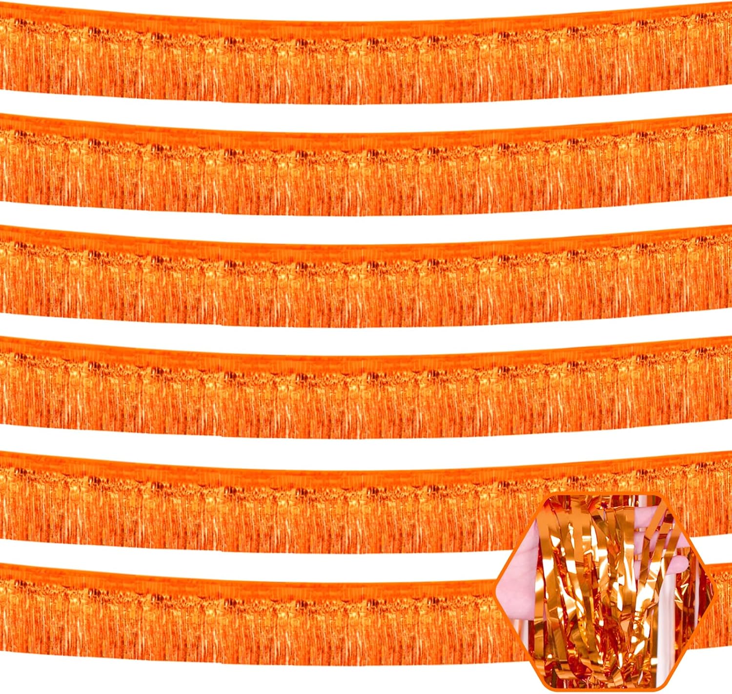 6 Pack 10 Feet Orange Foil Fringe Garland Metallic Tinsel Streamers Banner Wall Hanging Curtain Backdrop for Parade Floats, Birthday, Graduate, Mother's Day, Wedding Party Decoration