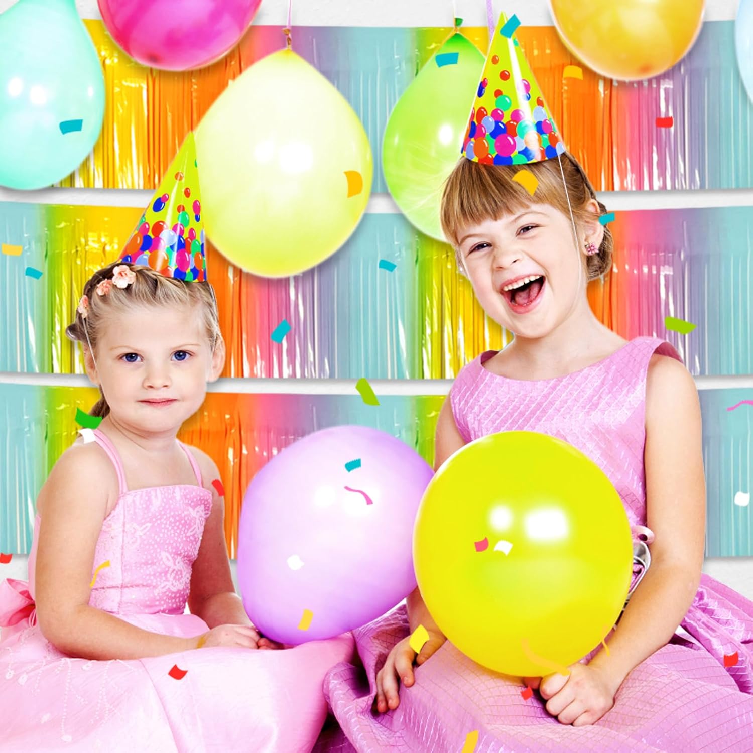 6 Pack 10 Feet Rainbow Foil Fringe Garland Metallic Tinsel Streamers Banner Wall Hanging Curtain Backdrop for Parade Floats, Birthday, Graduate, Mother's Day, Wedding Party Decoration