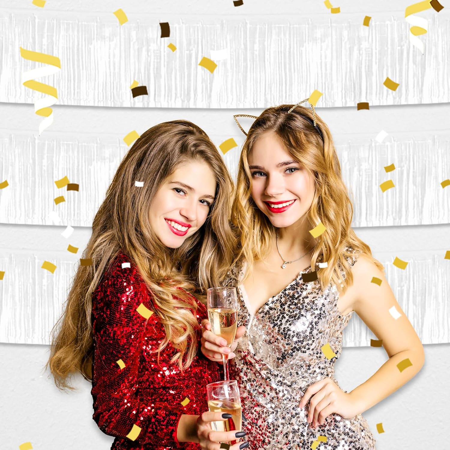 4 Pack 10 Feet White Foil Fringe Garland Metallic Tinsel Streamers Banner Wall Hanging Curtain Backdrop for Parade Floats, Wedding, Graduate, Mother's Day, Birthday Party Decoration