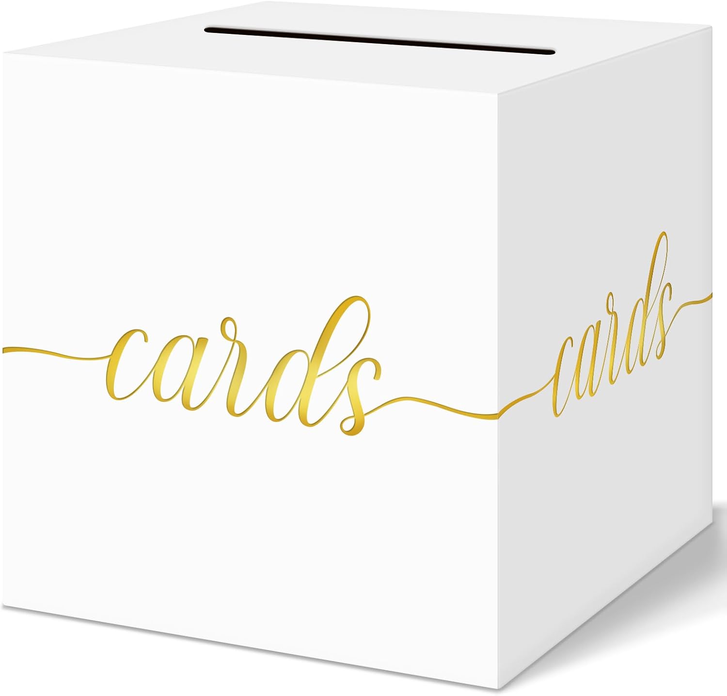 - Gold Foil White Wedding Card Box Size: Pack of 1, paper card box measures 8.7 x 8.7 x 8.7 inches, large size to hold all sizes of envelope cards for weddings or parties.(US copyright protection)