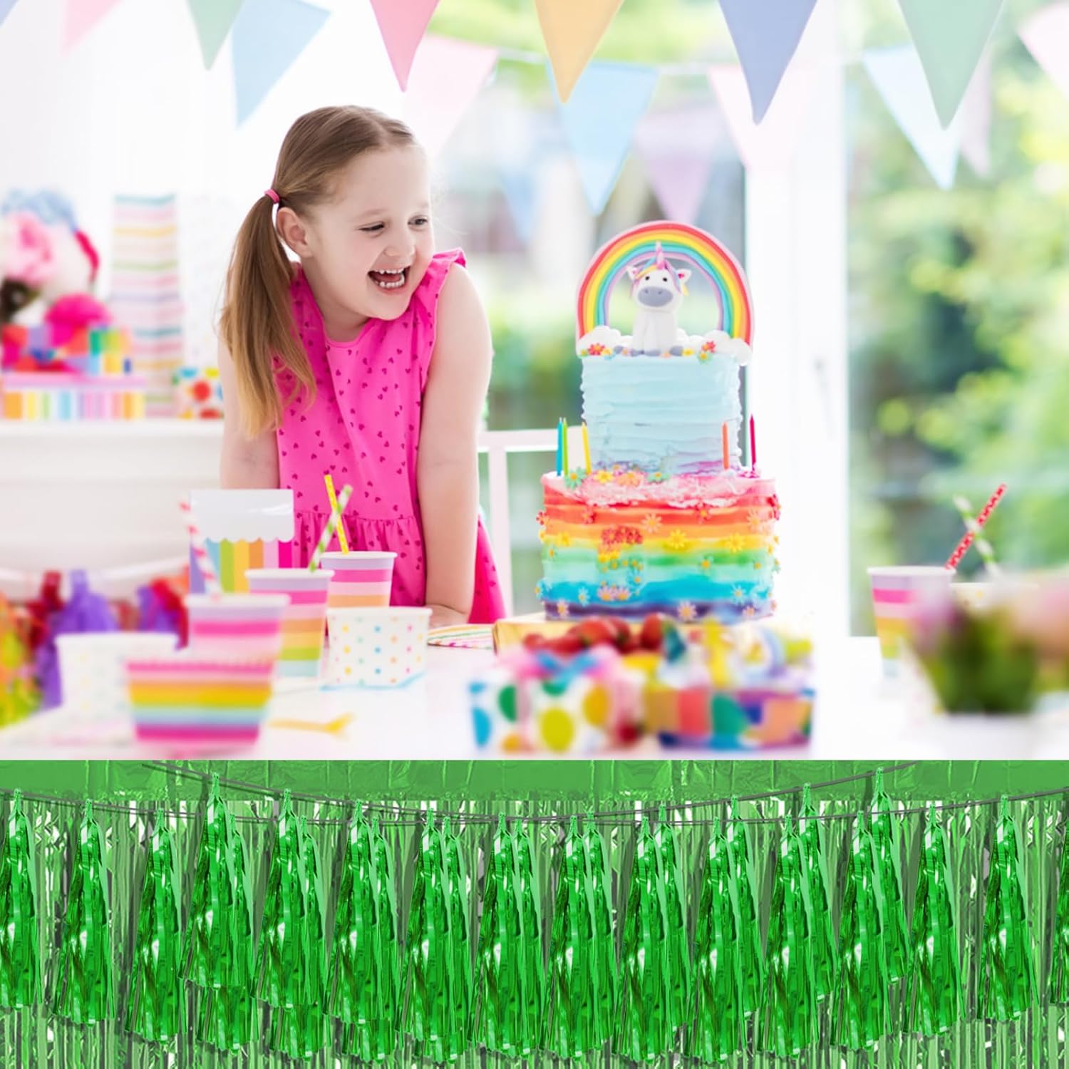 - 【Perfect Party Decoration】The green tinsel garlands are designed in a metallic Fringe, bright, and beautiful, at the same time, they shine in the sun, and these gorgeous tassel garlands create a wonderful backdrop or centerpiece for your party space. and bring you, your family, and your friend's good Visual effects. your party many emotional and touching moments where a lot of pictures will be taken and everybody will have a wonderful time together.