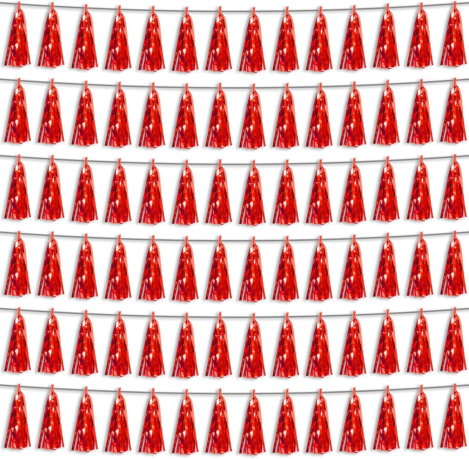 - 【Red Party Supplies Set】: The total length of the red birthday tassels banner is 59 feet, divided into 6 strips, each 9.8 feet long. Each banner contains 15 tassels, and each tassel measures 14 inches, for birthday decorations many occasions, and so on