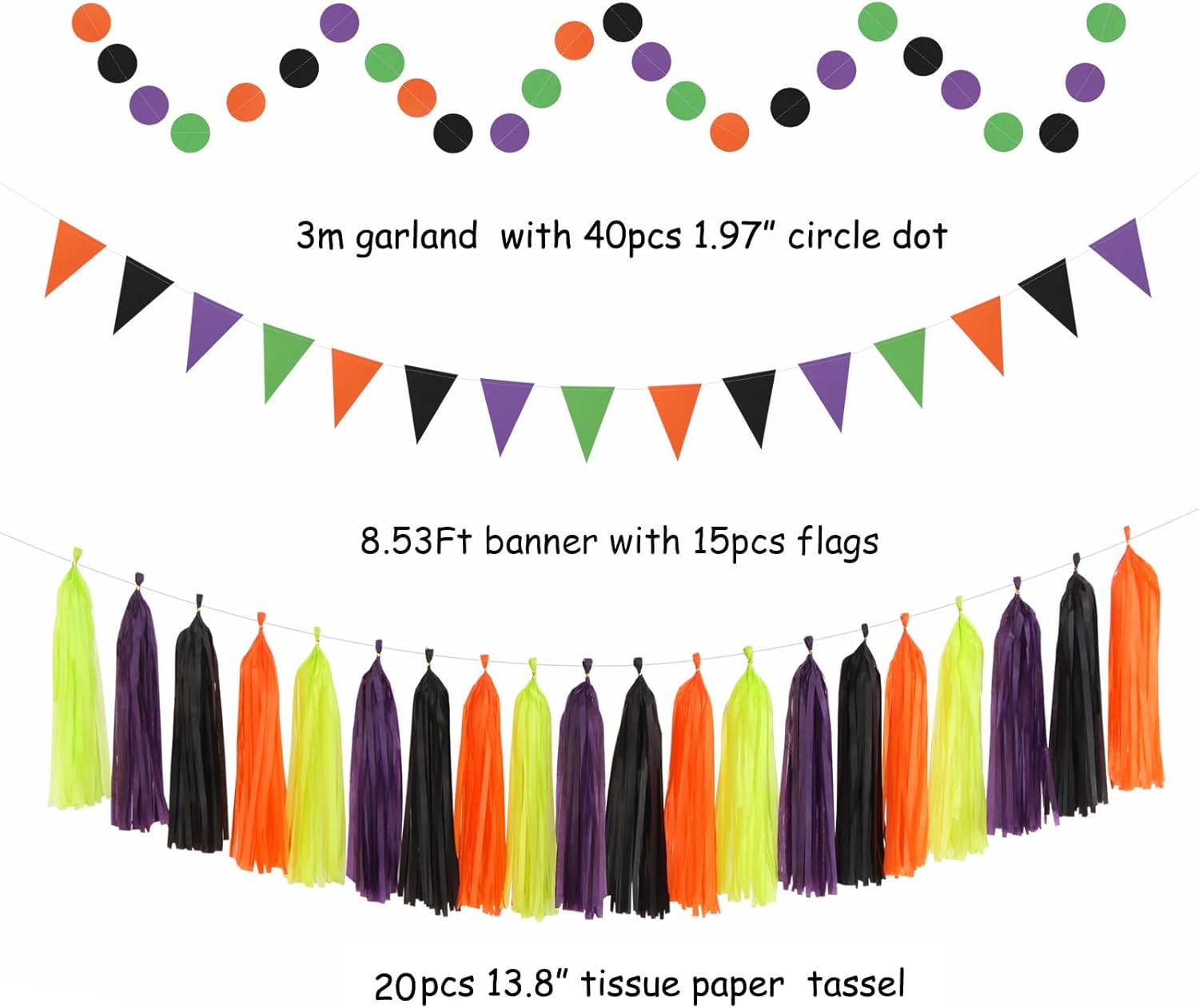 - Unique Design:Unique orange black purple green mix and match make your party more vibrant and gorgeous. This design is suitable for halloween to create a better atmosphere.