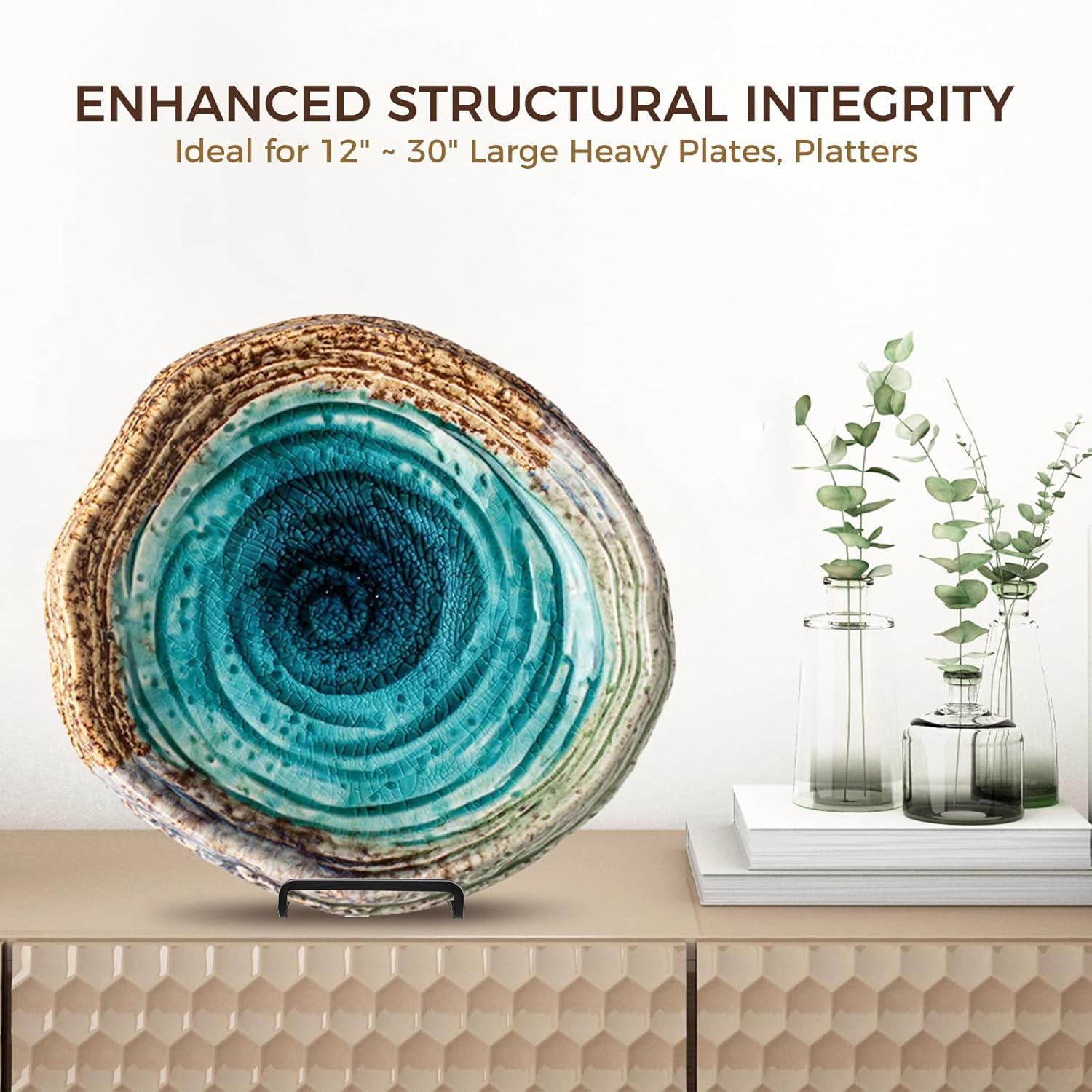 - Design for Oversized Items - This 10 inch plate stand features a upgraded 4" widened base and a sturdy 2.5" deep lip, and use 5.5 thickened wire diameter as a strong support, which can holds up to 20 lbs. Perfect for holding super large objects ranging from 10" to 30" in size, such as heavy and thick plates, frames, plaques, tiles and artworks.
