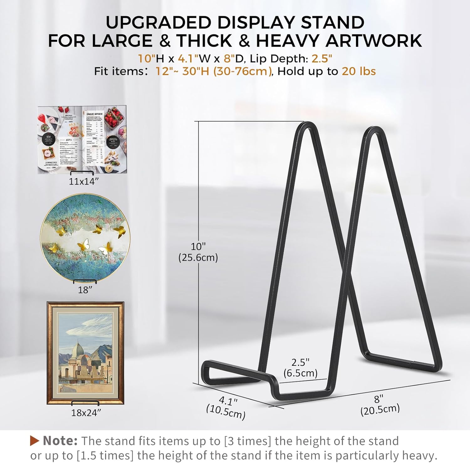- Wide Applications - This 10 inch metal stand with solid construction and pretty appearance is practical, durable and stable. It can hold all kind of heavier and bigger things, such as decorative plates, platters, award plaques, photo frames, trays, painting tiles, cutting boards, cookbooks, wedding signs, canvas art, meteorite slices and more.