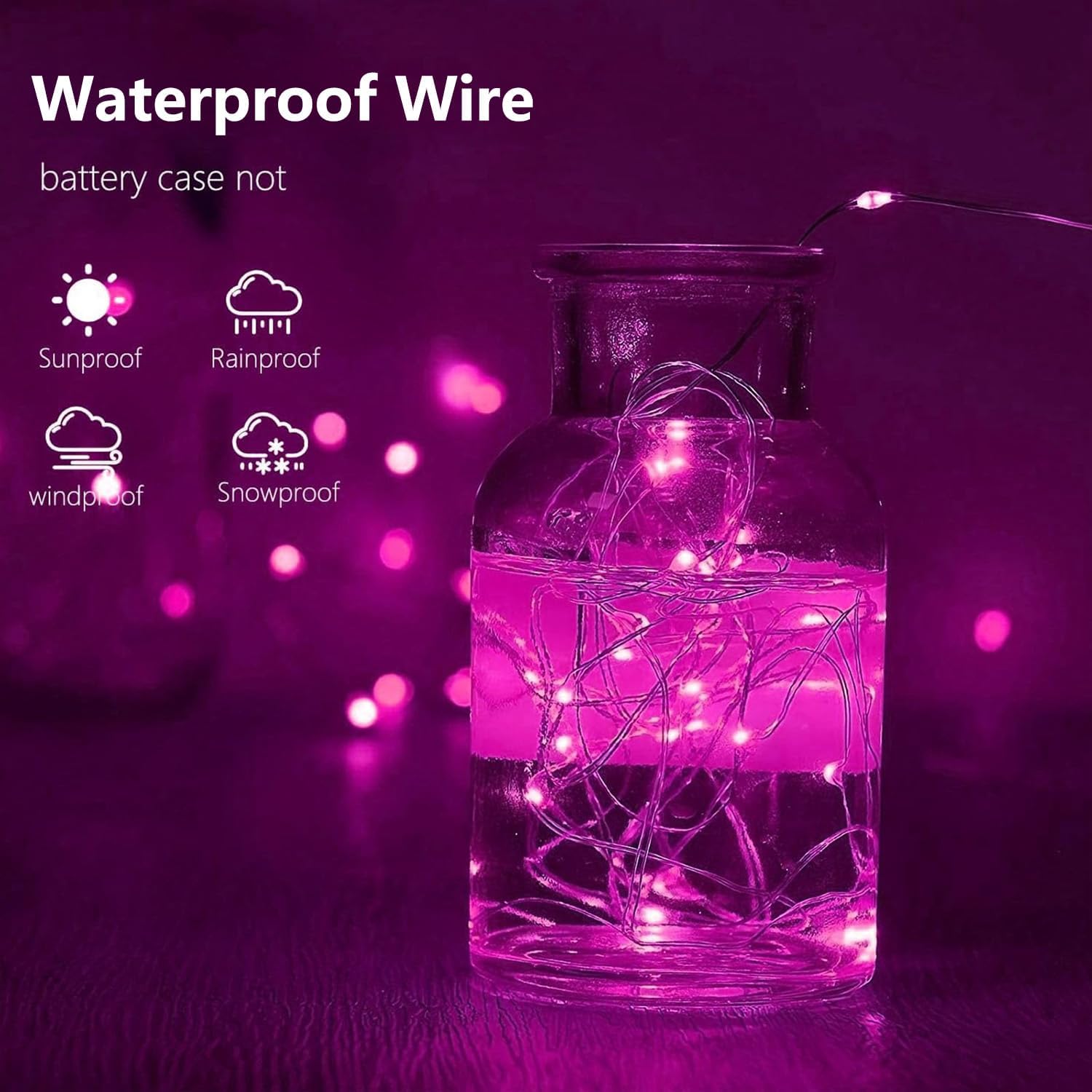 - Waterproof LED String Lights: With waterproof design, the silver wire battery fairy lights can keep shinning even under wet condition, ideal for indoor outdoor home decor. The battery case is a regular case and should be covered from rain/snow when used outside