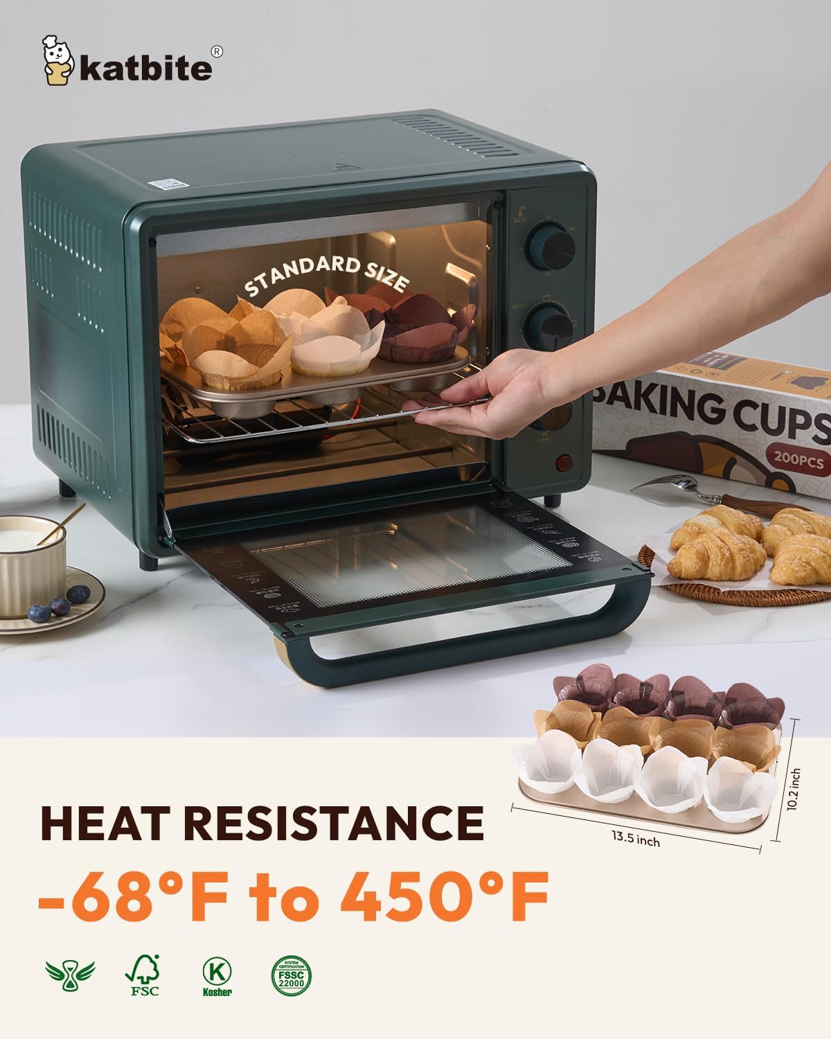 Lotus Tulip Cupcake Liners 200pcs - Katbite Premium Parchment Baking Cups, Non-Stick & Heat-Resistant, Perfect for Parties, Weddings, Birthdays, Christmas, Baby Showers