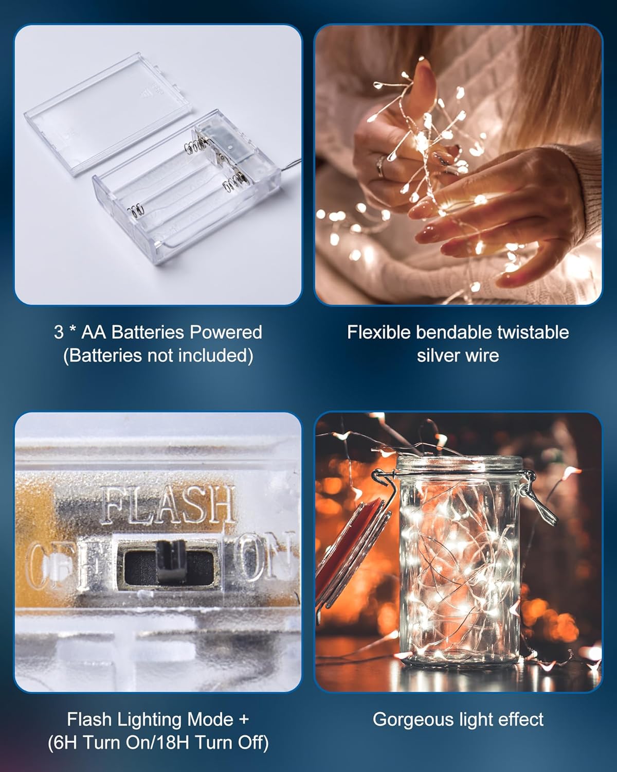 - Flexible Silver Wire: The starry moon fairy lights are made of a soft bendable silver wire. Flexible to wind this silver wire LED fairy light around the dried or fresh flowers or an oil painting or wrapping the potted dead branches, or decorating the birthday cake, great for birthdays, anniversaries, or engagement