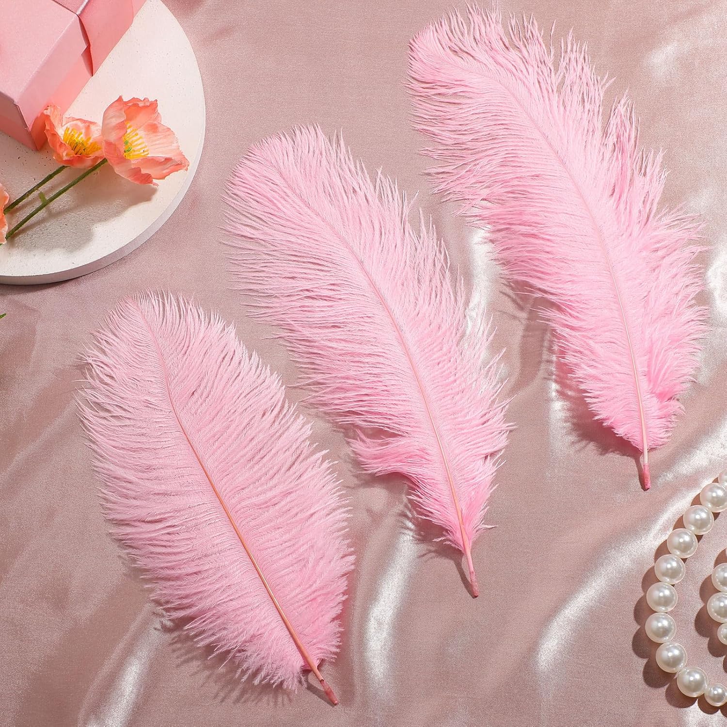 - Soft and Fluffy: the large pink feathers are made of quality natural ostrich feathers that fall off naturally, will not harm the ostrich are healthy, which are made through strict selection, adopting the process of cleaning, sanitizing and coloring, soft and smooth, lightweight and fluffy, which are exquisite materials for making crafts and ornaments