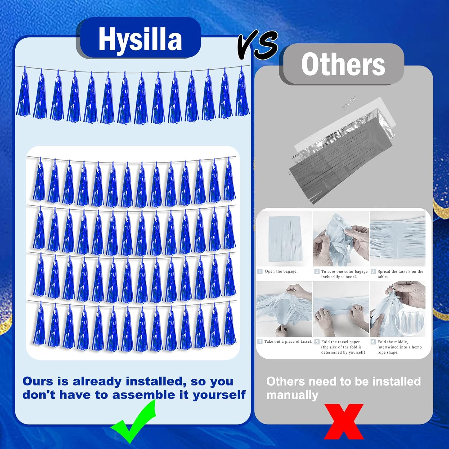 - 【Blue Party Supplies Set】: The total length of the blue birthday tassels banner is 78.7 feet 120tassels, divided into 8 strips, each 9.8 feet long. Each banner contains 15 tassels, and each tassel measures 14 inches, for birthday decorations many occasions, and so on