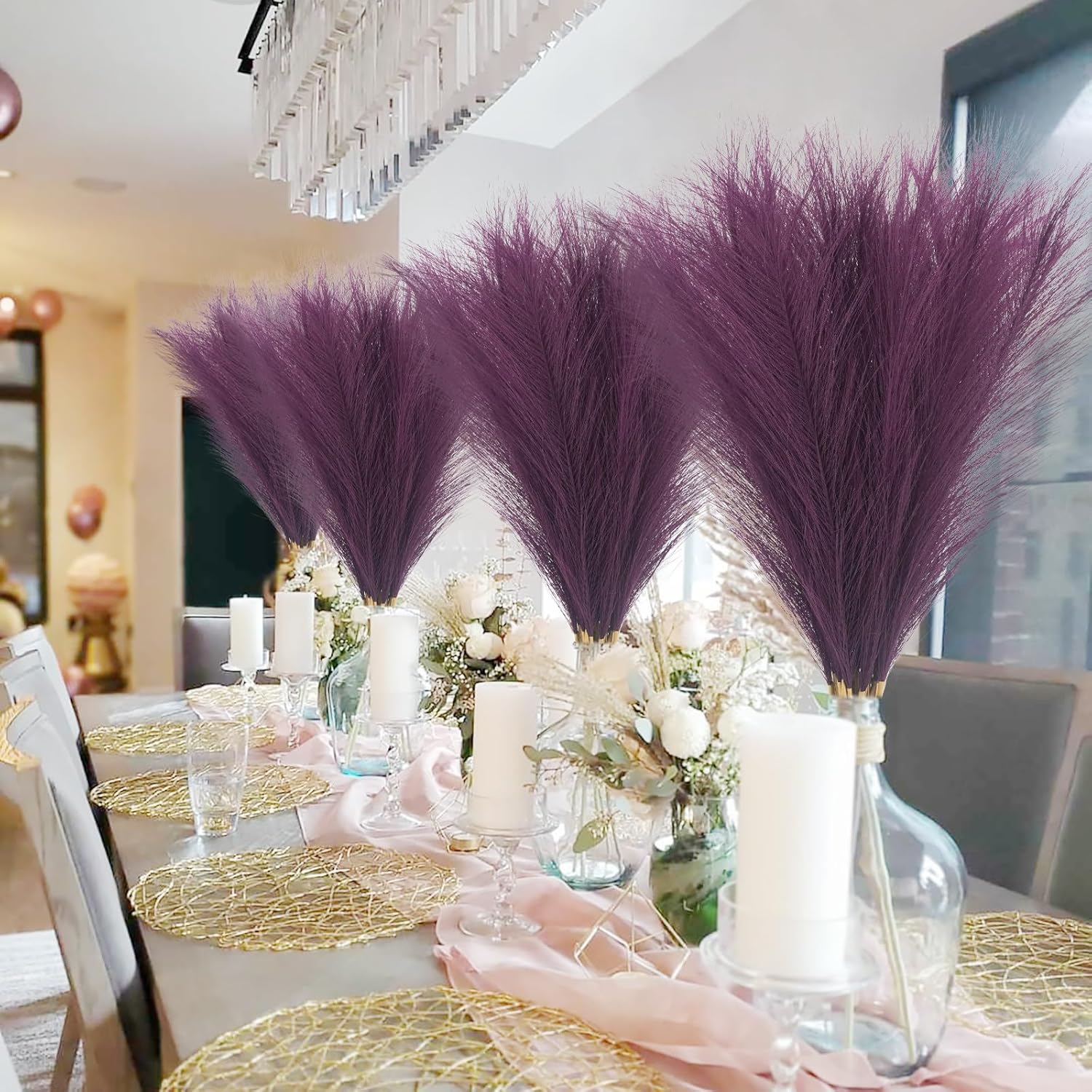 - Purple Pampas Grass Decor: You will get a pack of 50pcs artificial pampass grass, each stem 21.6”, and the heads of each stem is designed you can fluff them up for a fuller look, create a chic minimalist, or Bohemian modern display to complement your existing home arrangement
