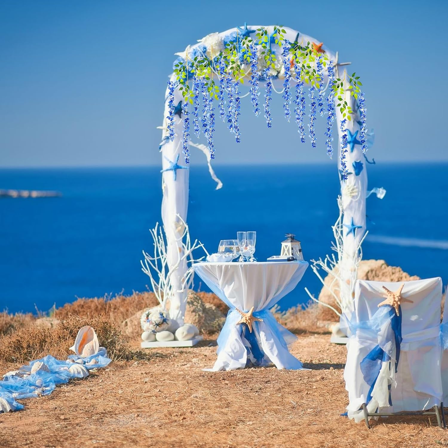 - 【Easy to Install】The royal blue hanging garland flowers stem are made of durable metal wire and covered with plastic. You can bend the wisteria flower in any shape to satisfy your decoration imagination without damaging it. And the wisteria flower is very easy to install and remove, you can reduce a lot of troubles on installation.