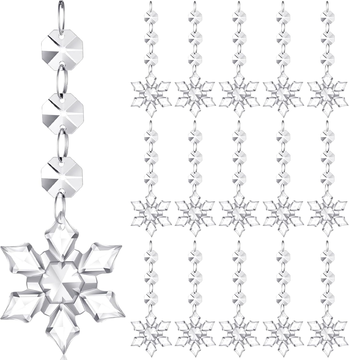 Nuenen 100 Pcs Hanging Crystals for Centerpieces Acrylic Chandelier Garland Beads Strands Prism Decorations Clear Teardrop Chandelier Crystals Pendant Wedding Home Garden Outdoor Ornaments(Snowflake)