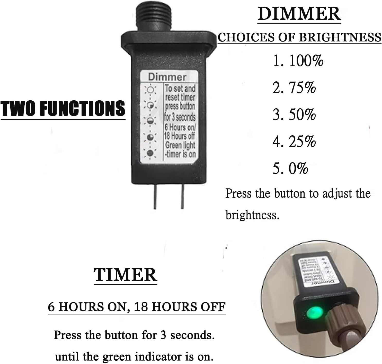 - 【DIMMER & TIMER】: This tree branch lights is featured with dimmer function for different brightness needs. Choices of 100%, 75%, 50%, 25% and 0% five brightness. Timer function is included, 6 hours on and 18 hours off or on/off manually