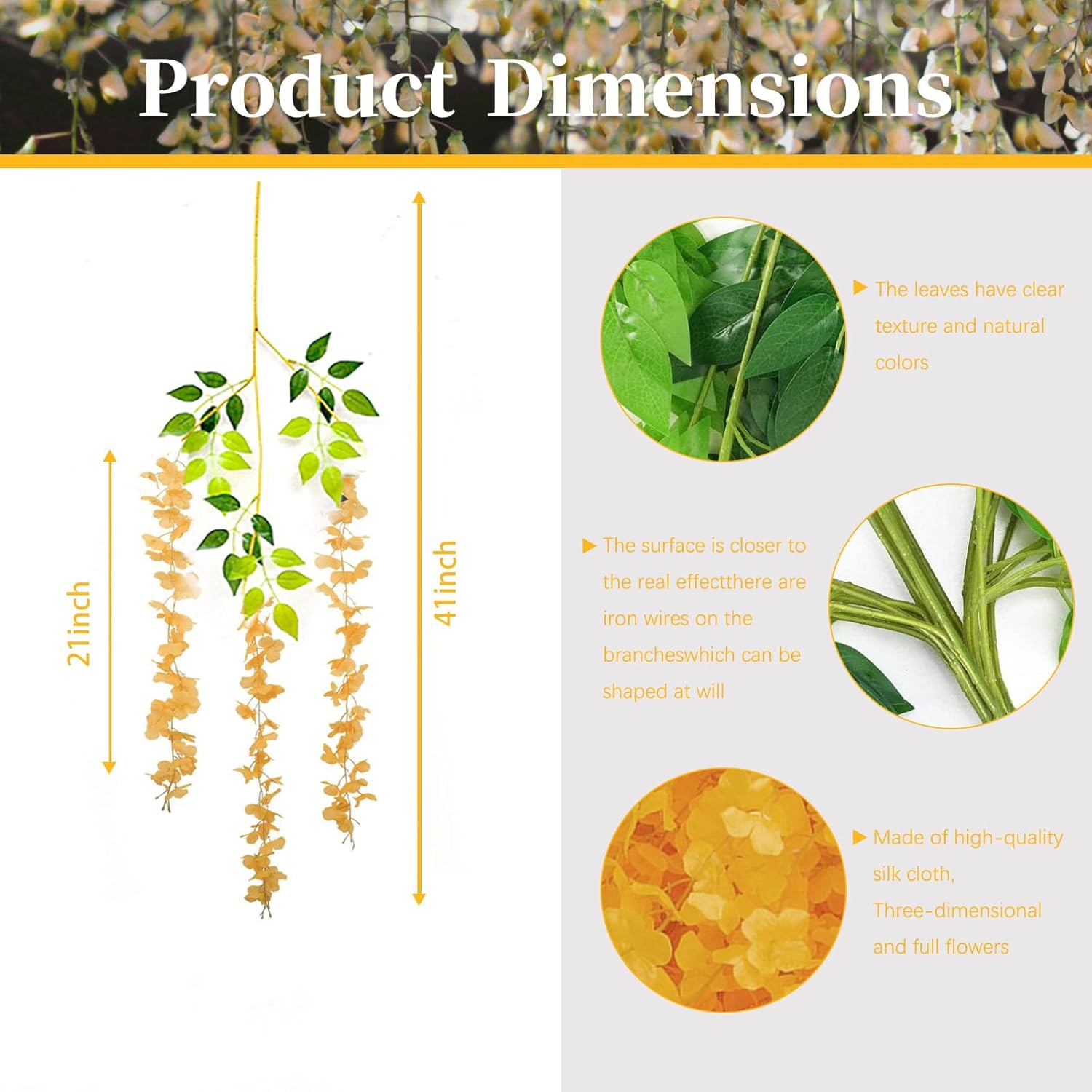 - 【Suitable for A Variety of Scenes】Orange wisteria floral garland have a purely natural pattern design, realistic and natural, suitable for decorating living rooms, bedrooms, study rooms, and windowsill places, so that your living space into the natural atmosphere, become more comfortable. At the same time, they are also suitable for decorating dinner parties, birthday parties, weddings, and other places, to create a warm atmosphere, so that your guests leave a good and unforgettable memory.