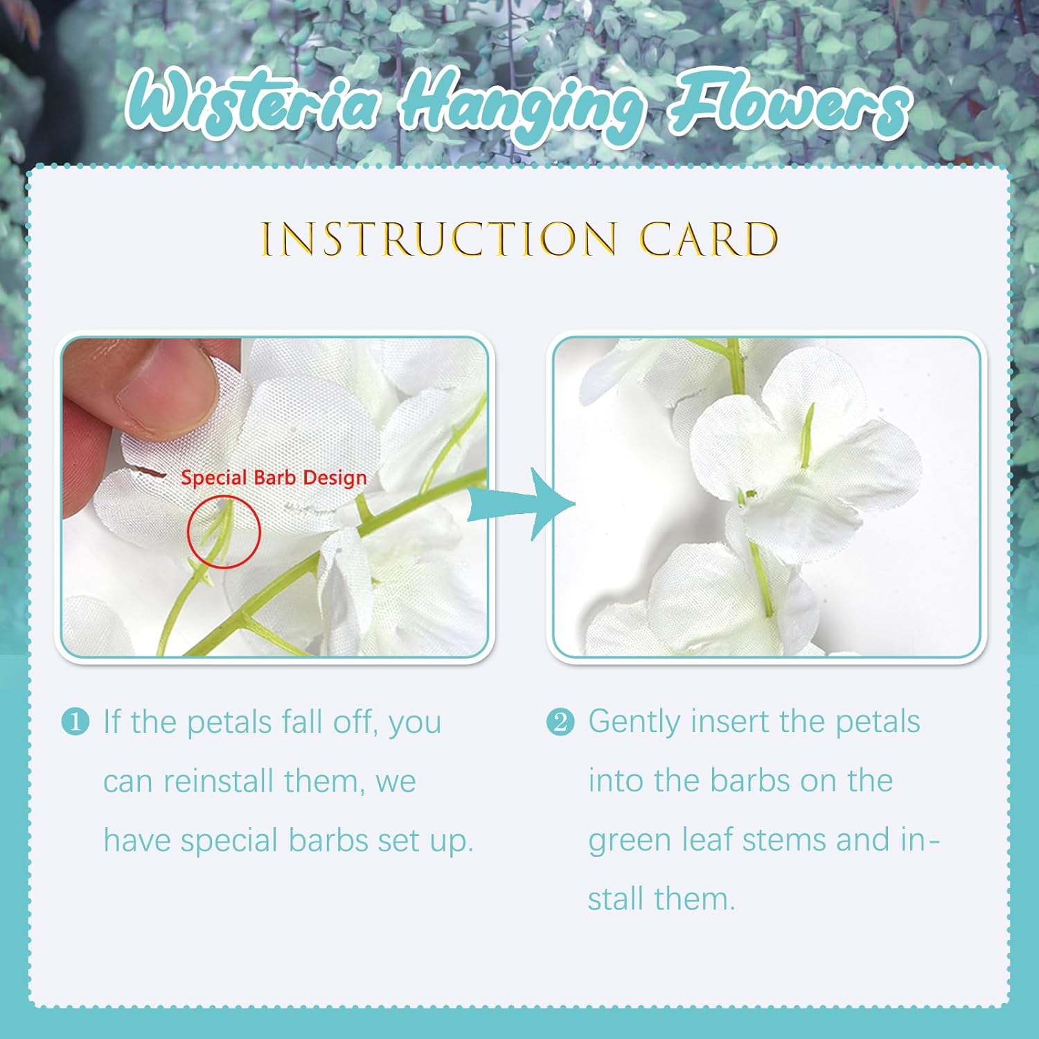 - 【Easy to Install】The teal wisteria flower vines stem are made of durable metal wire and covered with plastic. You can bend the wisteria flower in any shape to satisfy your decoration imagination without damaging it. And the wisteria flower is very easy to install and remove, you can reduce a lot of troubles on installation.
