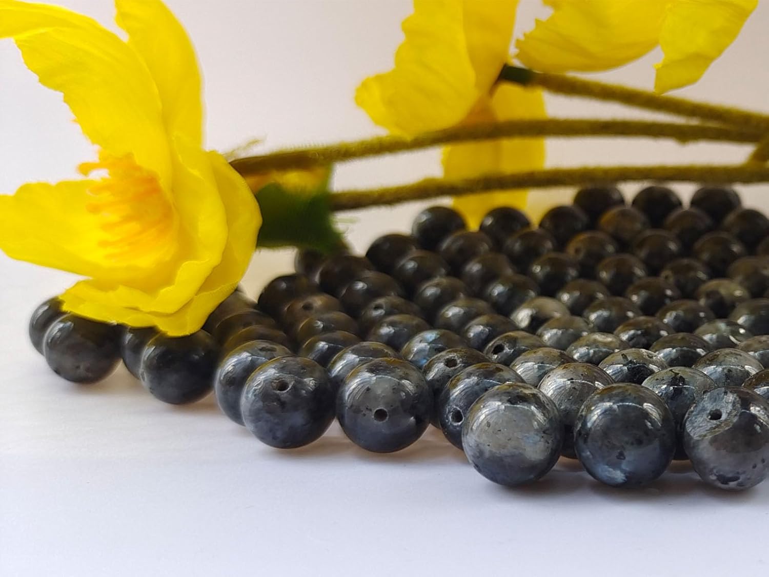 - Color : Black Larvikite Beads