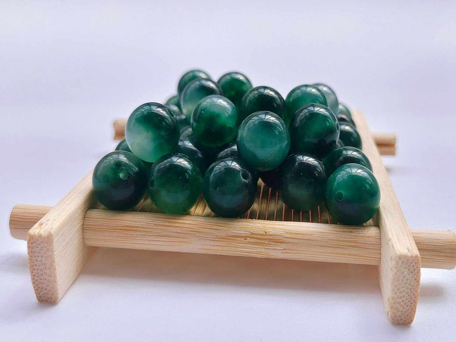 Stone Beads 8mm 100pcs Green Flower Jade Beads Round Loose Gemstones Beads for Bracelet Necklace Jewelry Making (8mm, 60826 Green Flower Jade)