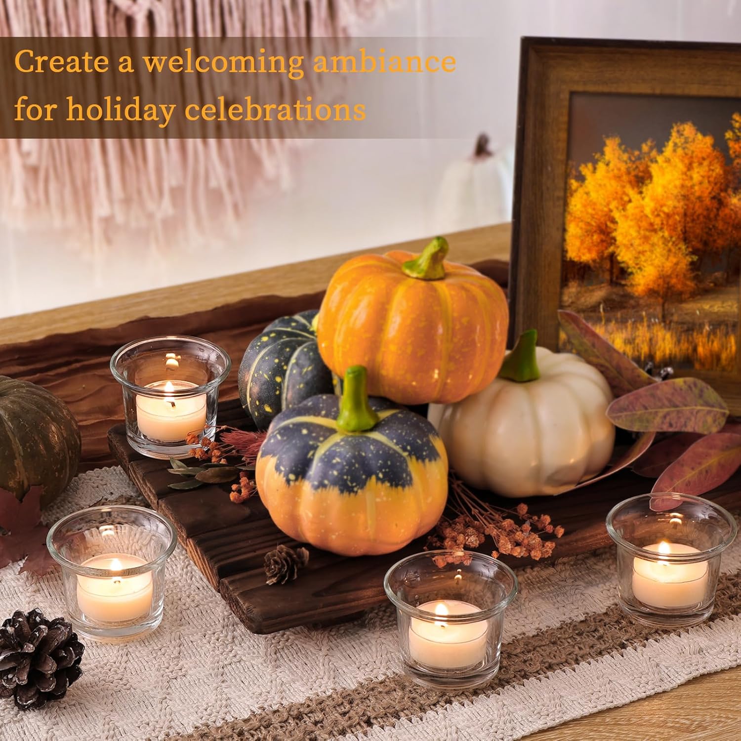 LETINE 24pcs Clear Tealight Candle Holder & 24pcs White, Smokeless, Unscented Soy Wax Tea Candles - Votive Candle Holders, Tea Lights Candles for for Fall Decorations,Weddings Decor