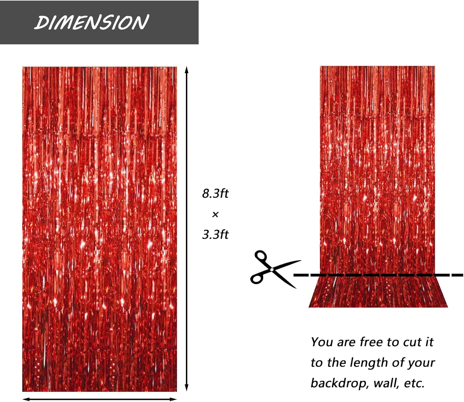 Red Foil Fringe Curtain 3.3×8.3FT 2 Packs, Metallic Tinsel Curtains Party Streamers for Birthday Graduation Baby Shower Decoration (2pcs,3.3FT×8.3FT, Red)