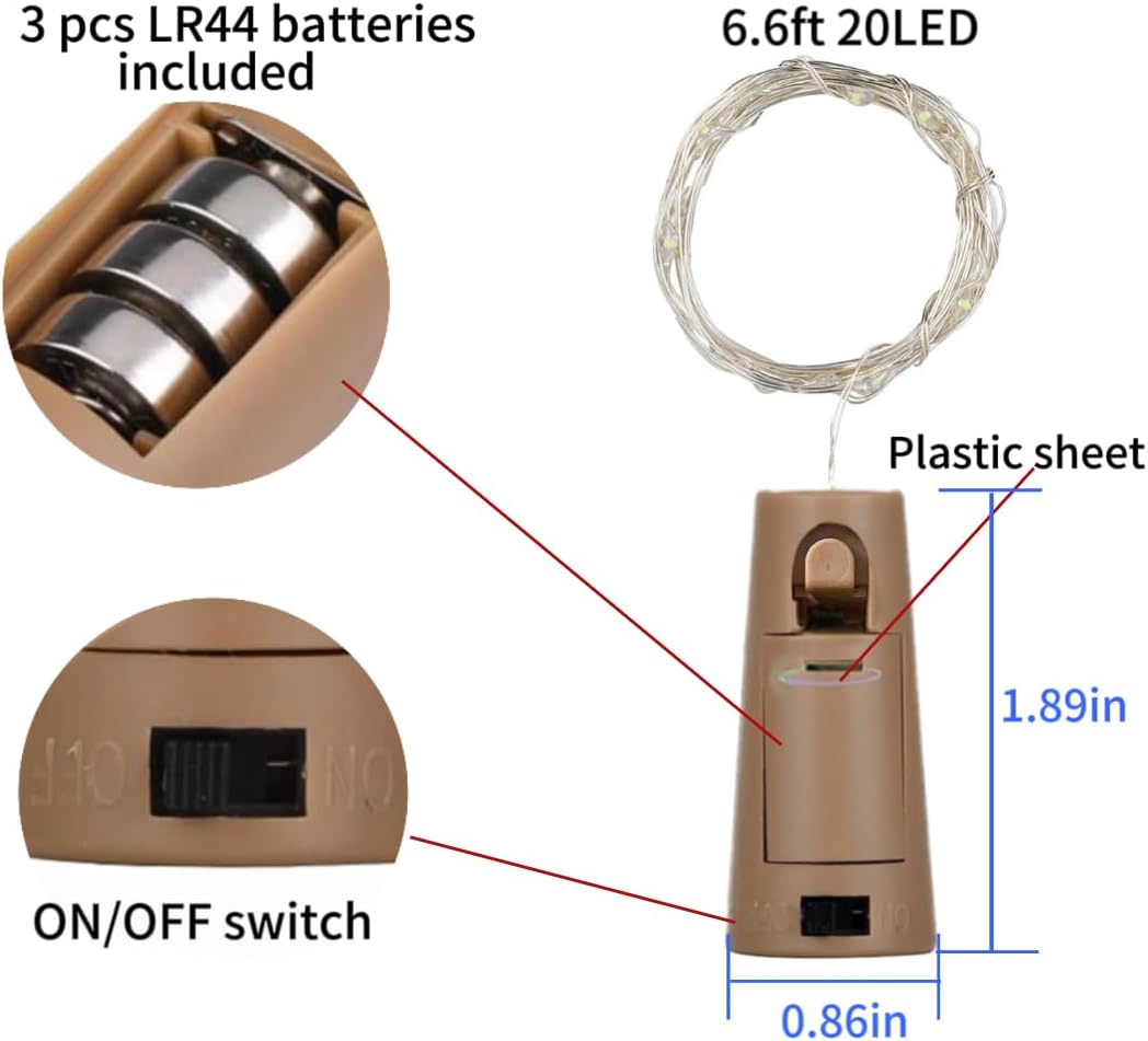 - Enjoy DIY Fun: 4 pcs cork lights each made of premium silver copper wire is anti-tangle and will not easily break off, 6.6 feet which is long enough for any decoration and can be easily designed to any DIY shape you like