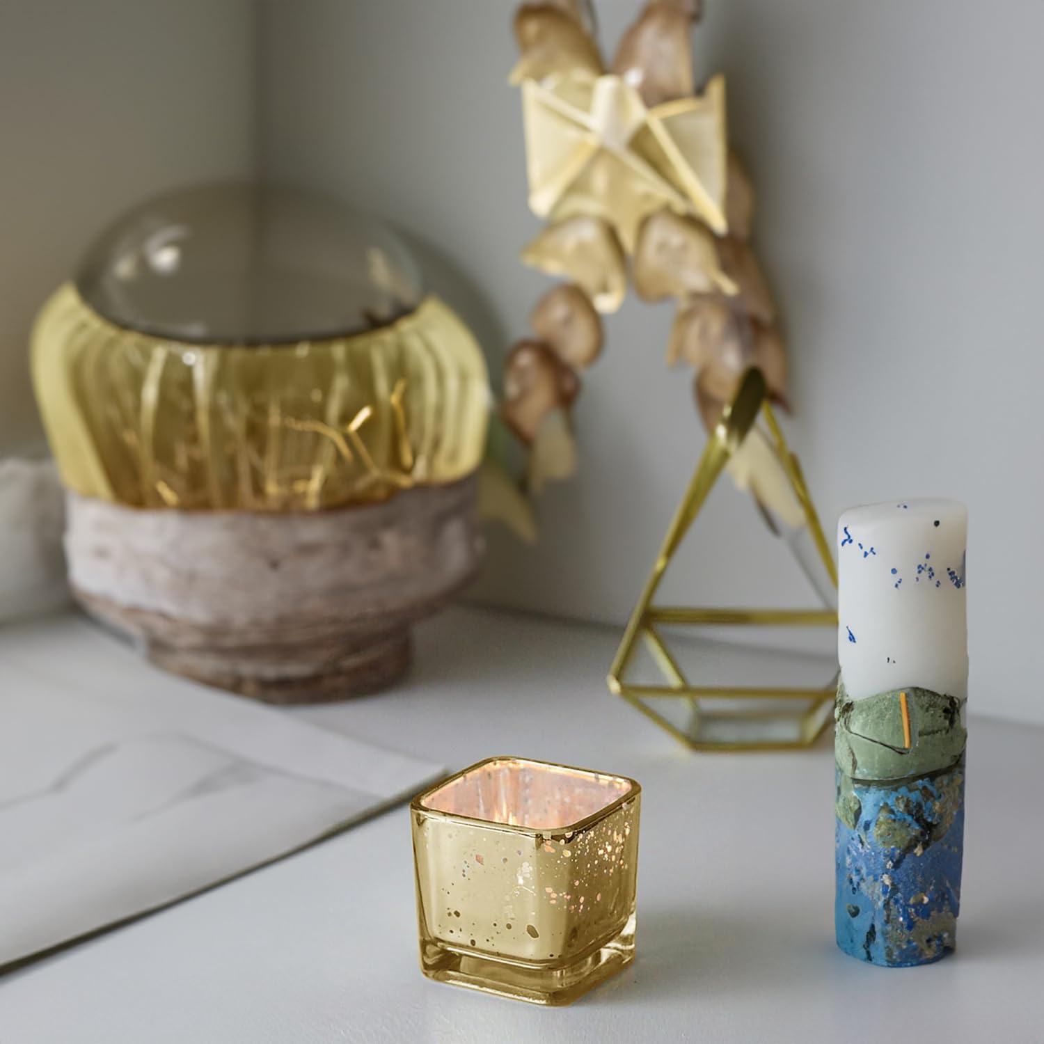 - Include: 6 pieces Gold Speckled tiny cube Tea light Votive candle holder, carefully packaged, Vase filler and Candle not included