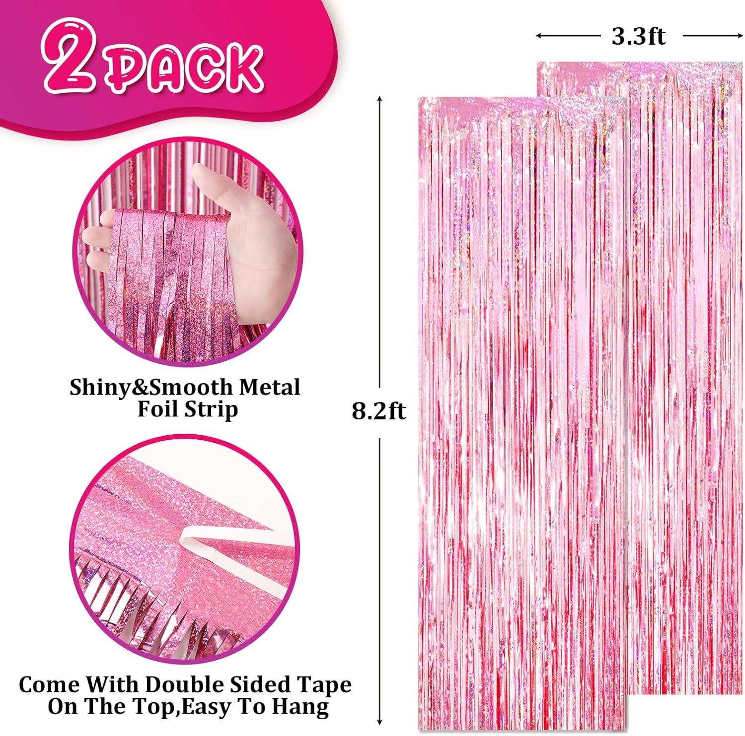 2 Pack 3.3x8.2 Feet Laser Pink Foil Fringe Backdrop Curtains, Tinsel Streamers Birthday Party Decorations, Fringe Backdrop for Graduation, Baby Shower, Gender Reveal, Disco Party