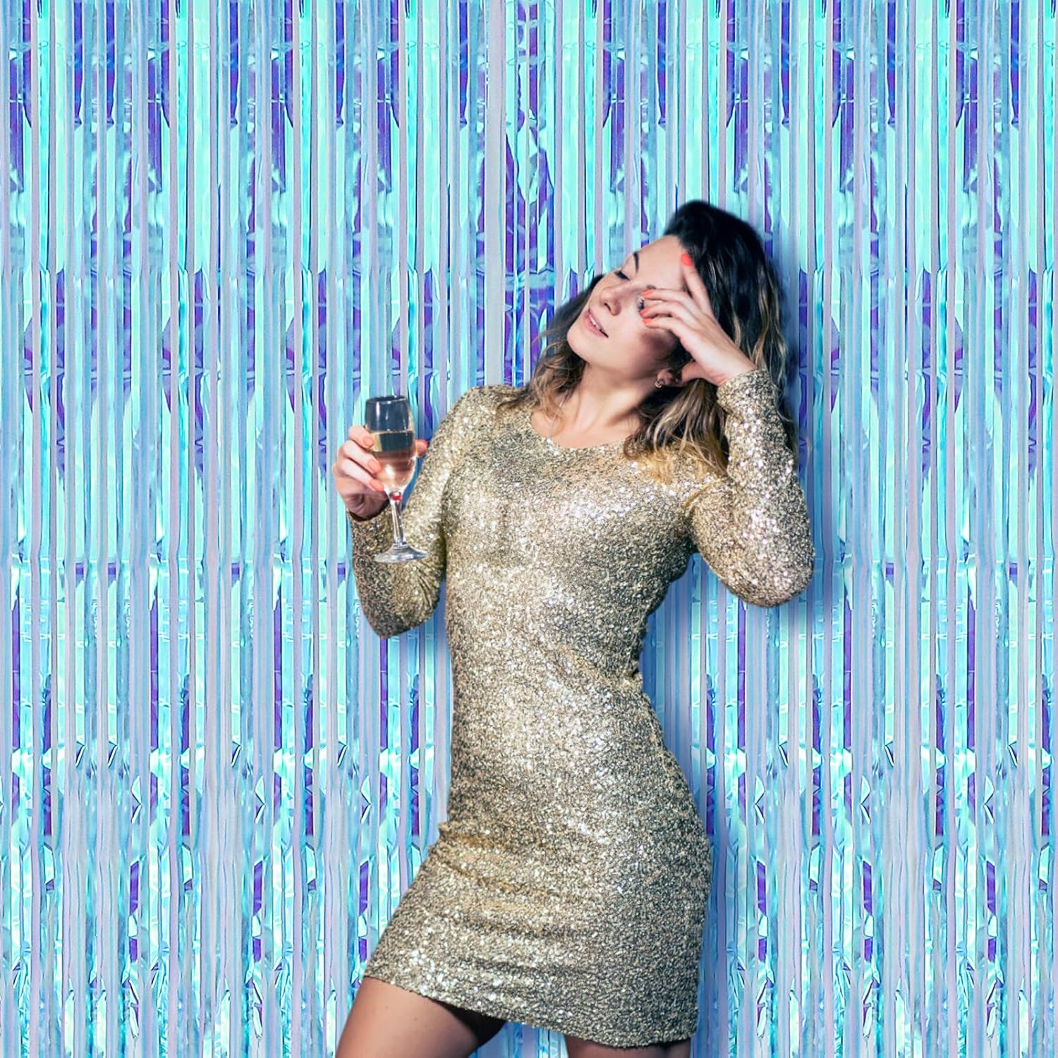 - Premium Material: This Neon Iridescent foil curtain backdrop is made of stable tinsel, non-fading, stay shiny and reusable. Unfold it and then enjoy your glittering party