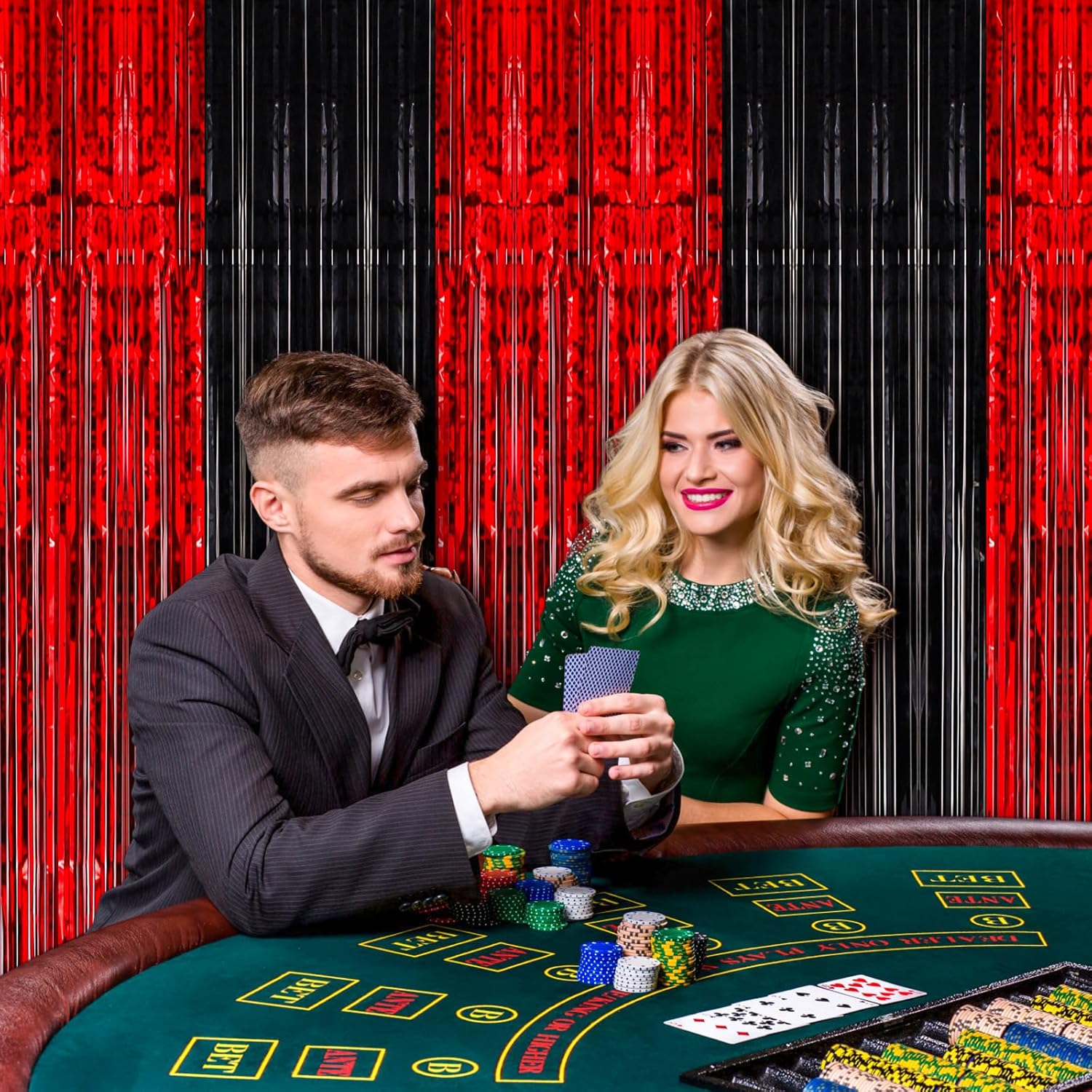 - Premium Material: This Red and Black foil curtain backdrop is made of stable tinsel, non-fading, stay shiny and reusable. Unfold it and then enjoy your glittering party