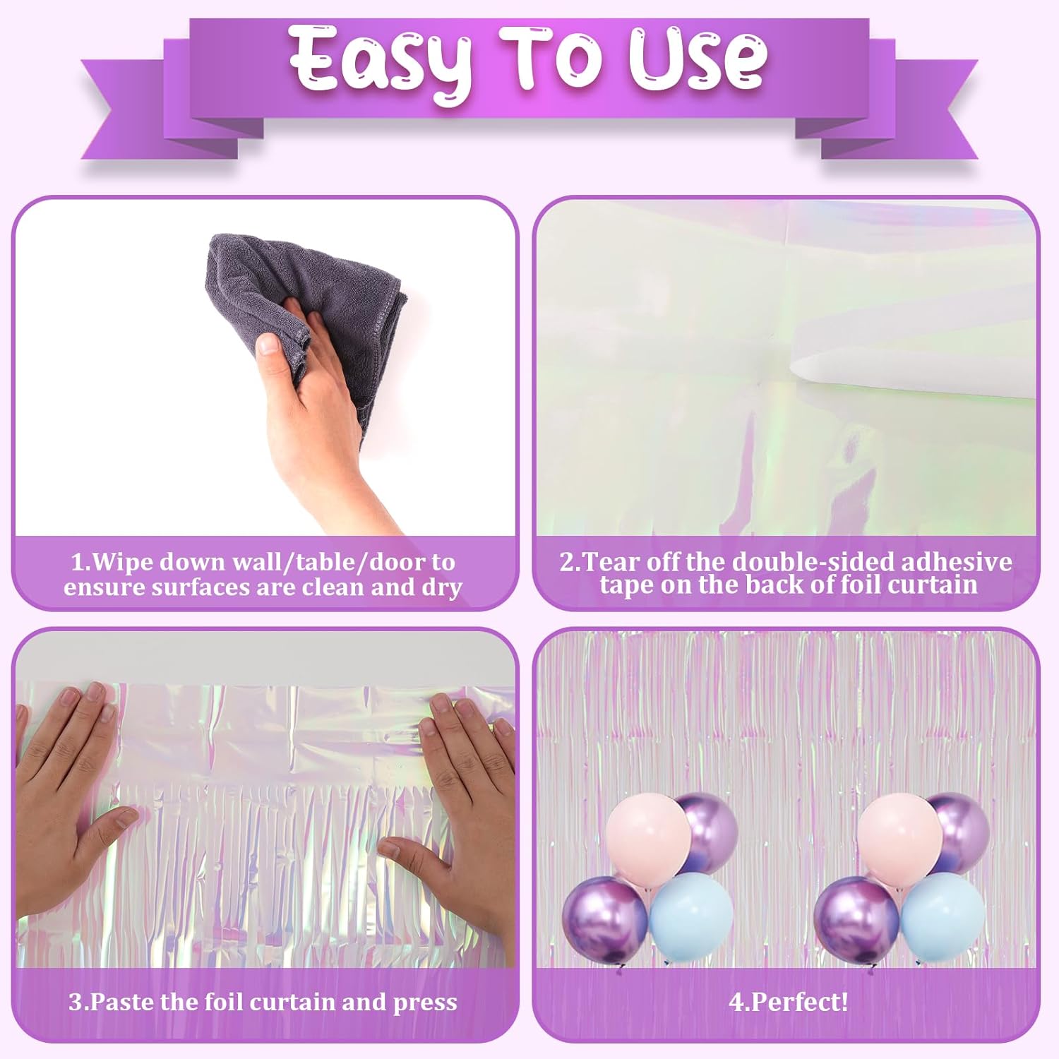- Premium Material: This Iridescent transparent foil curtain backdrop is made of stable tinsel, non-fading, stay shiny and reusable. Unfold it and then enjoy your glittering party