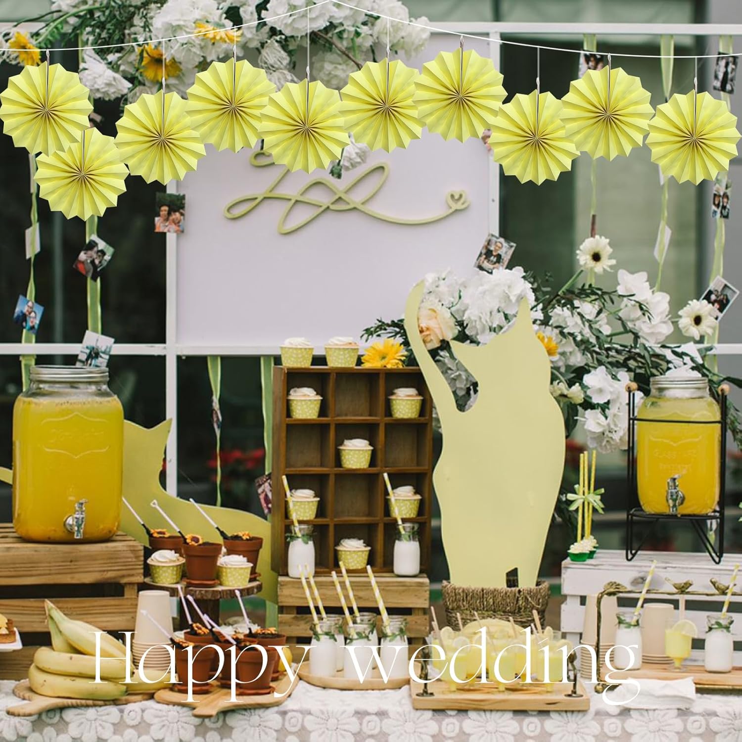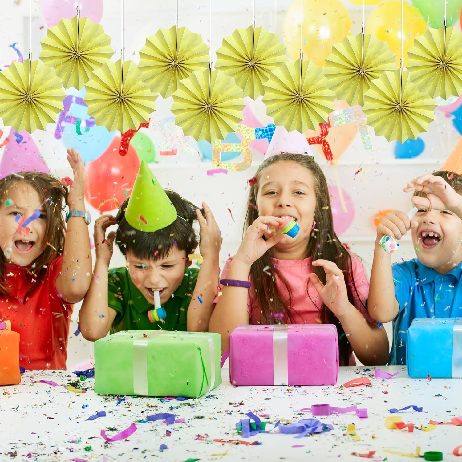 Yellow Hanging Paper Fans,Yellow Accessories Paper Decorations for Party,Color Party Decorations,Bee Themed Classroom Decor,12in Hanging Paper Fans 30 Color DIY Set (Light Yellow)