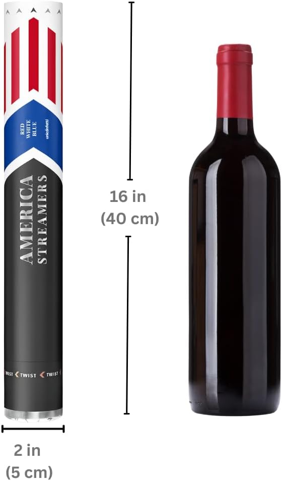 16" America Streamers Cannon [6 Pack] Red White & Blue Streamer Poppers No Mess, Biodegradable Streamer Paper, No Mess Confetti Poppers, Independence Day/July 4th, Conventions, Loud, Shoot Up to 40ft