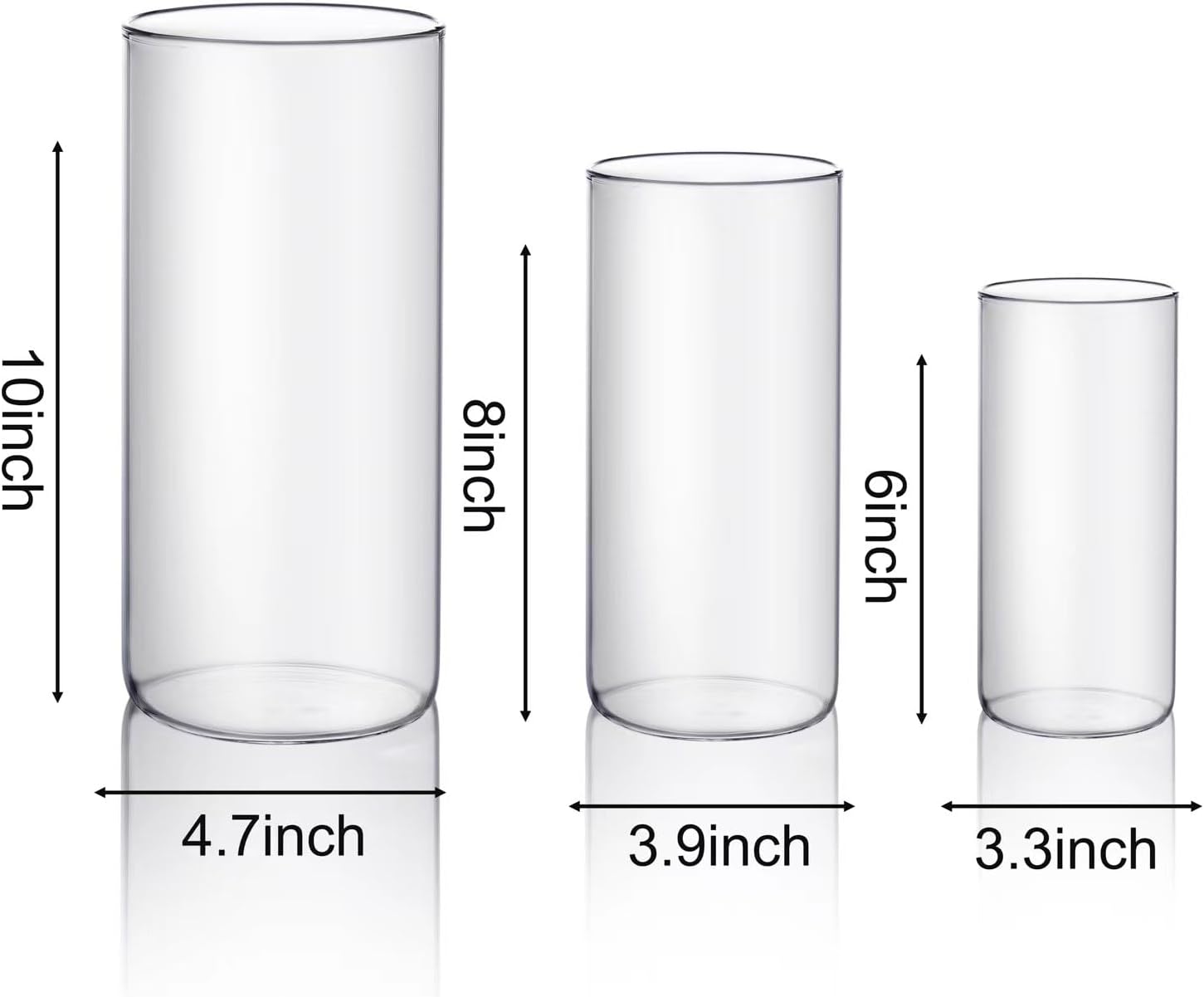- Glass Candle Holder 3 Pieces: 3 piece glass chimney candle holder with bottom side close and above side open, carefully packaged, vase filler and candles not included