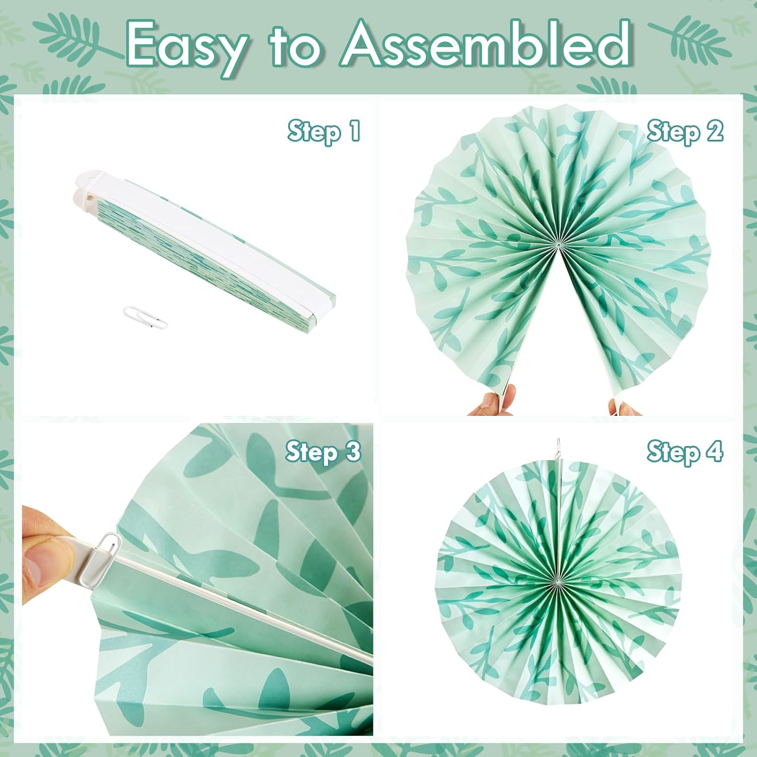 - Elegant and Sophisticated: These Leaves Sage Green Paper Fans Decorations feature a beautiful sage green color and delicate leaf designs, adding an elegant and sophisticated touch to any event.