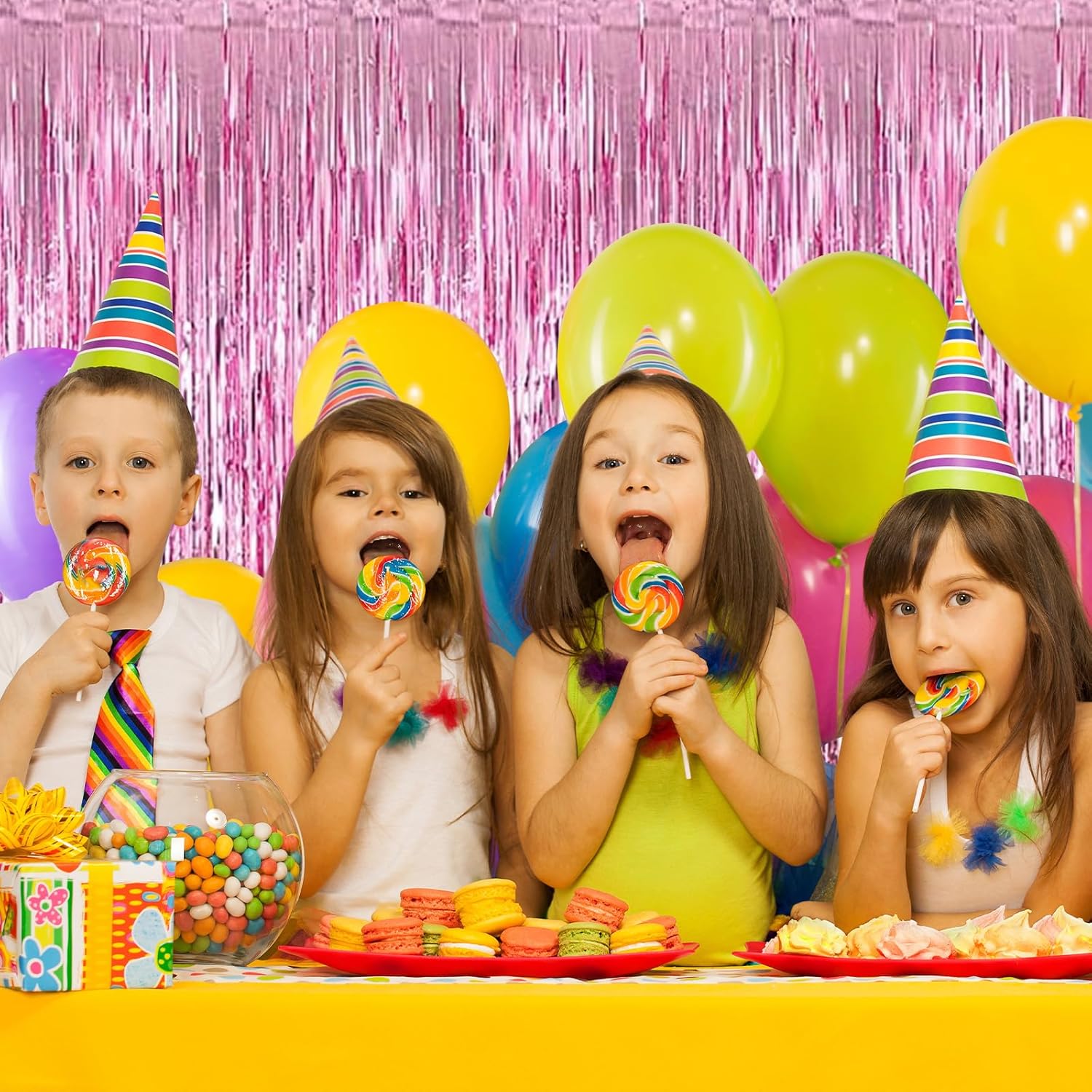 - 【Ideal Party Decoration】Show off your creativity and make your party stand out by using these pink foil fringe curtains to decorate your party. You can hang them on a door or wall as a surprise entrance to the party, or pair them with LED lights, balloons, and banners to create a shiny party backdrop for different themes and occasions.