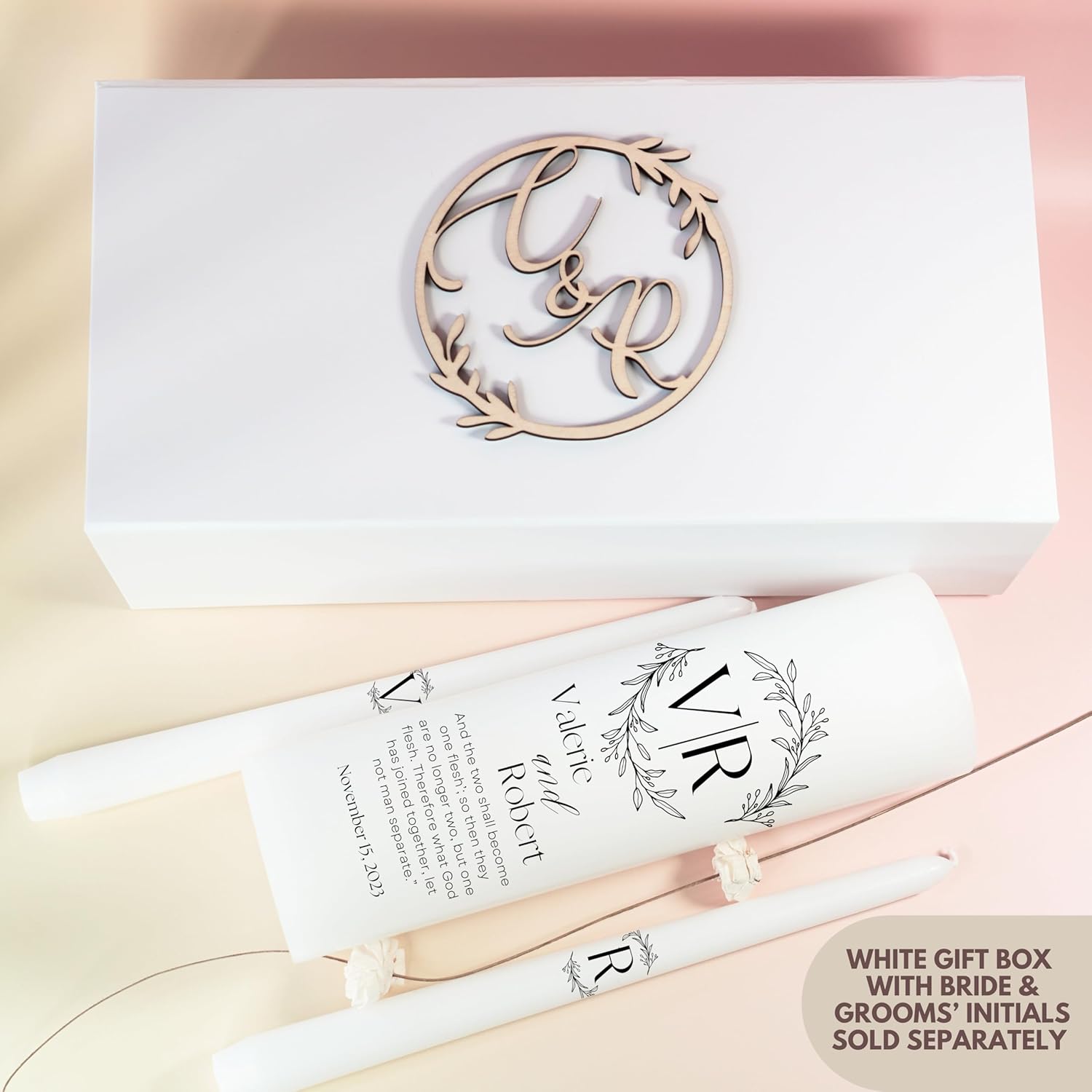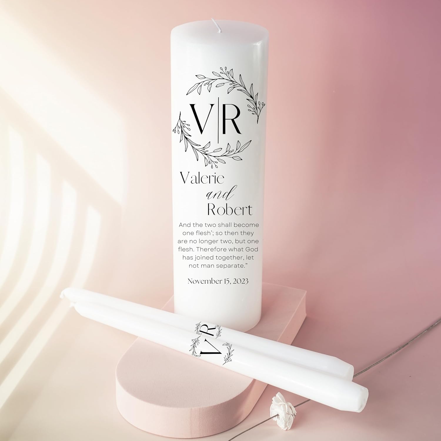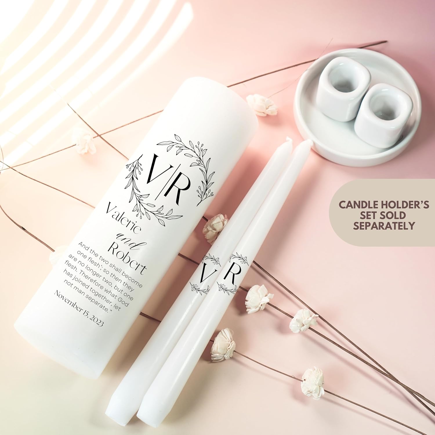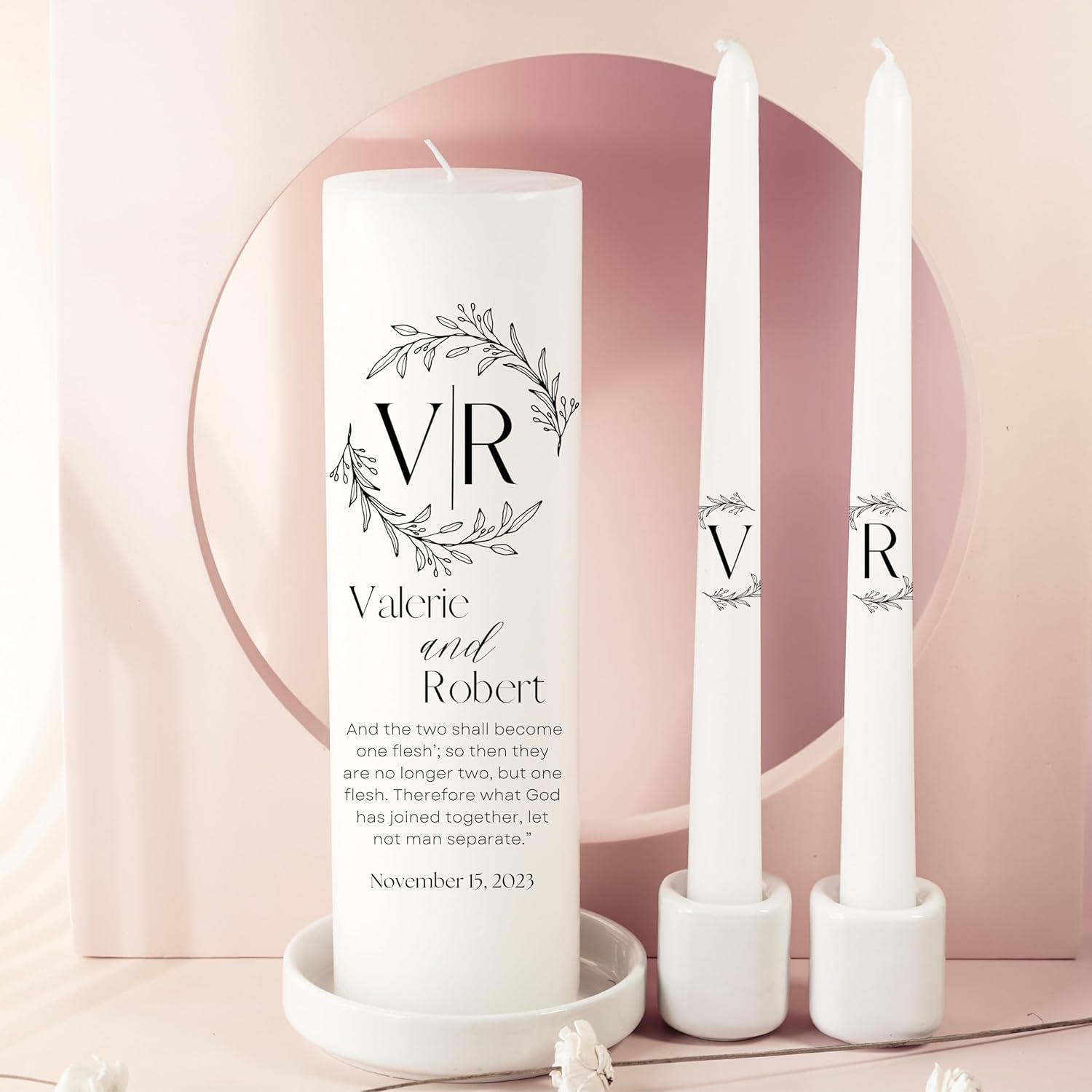 Unity Candles for Wedding, Modern Unity Set, Custom and Personalized Pillar and Taper Candles with Bible Quote, Unscented White Premium Wax, Religious and Wedding Ceremony, Special Events (Black)