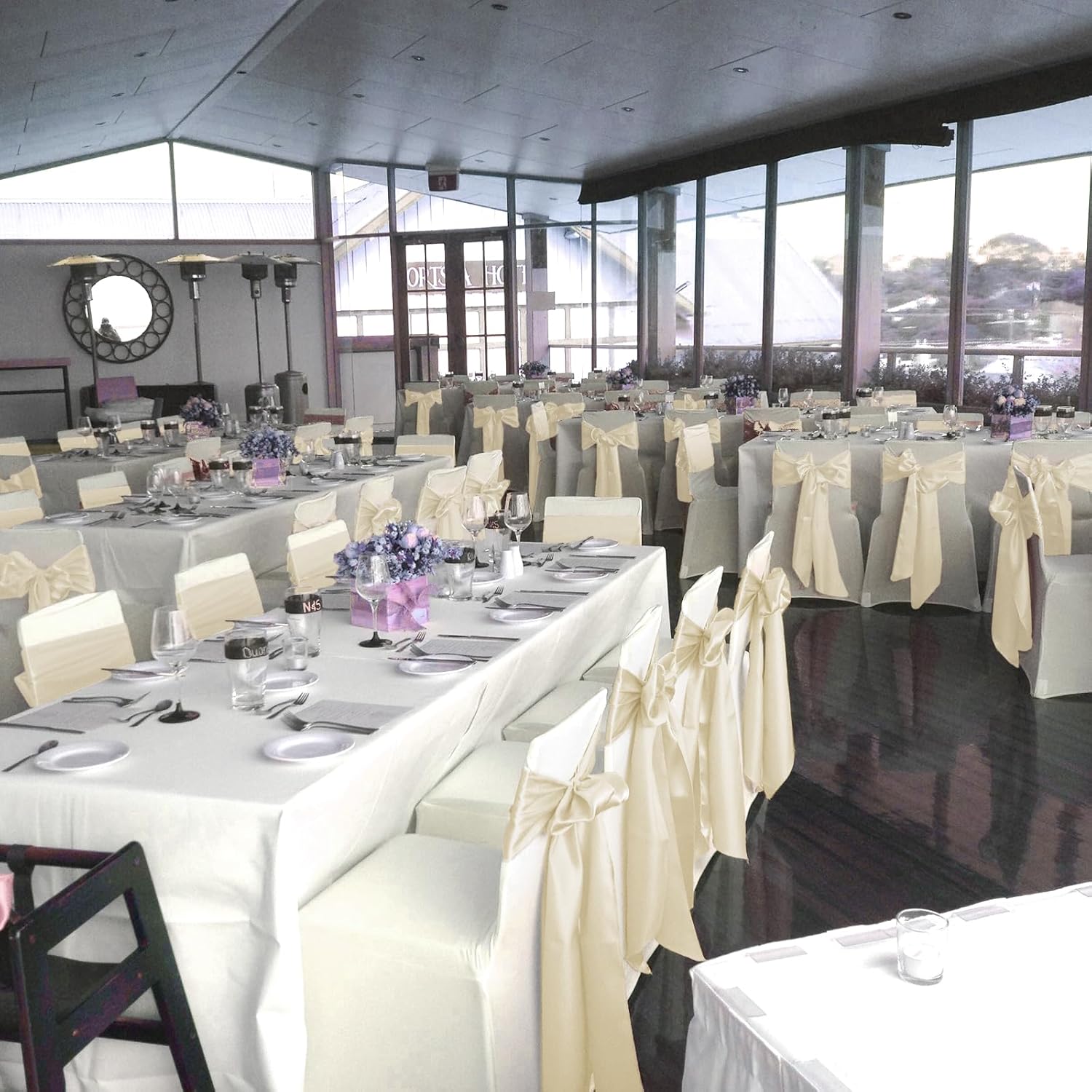 fani 120 PCS Ivory Satin Chair Sashes Bows Universal Chair Cover for Wedding Reception Restaurant Event Decoration Banquet,Party,Hotel Event Decorations (7 x 108 inch)