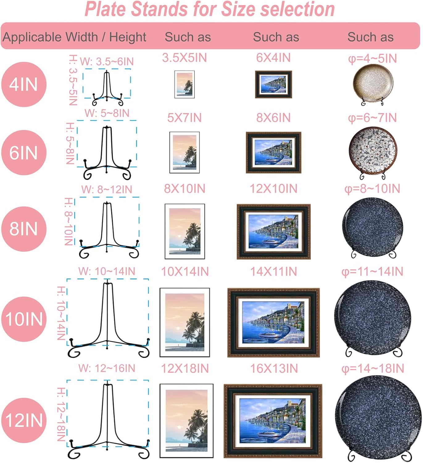 - Choose The Right Size: 4 Inch plate display stands are suitable for items of Rectangle 3.5 - 5 Inch Height / Wide and Round φ=4 - 5 IN Diameter. Plate holders for displaying are made of solid metal wire and black spray paint resistant to corrosion