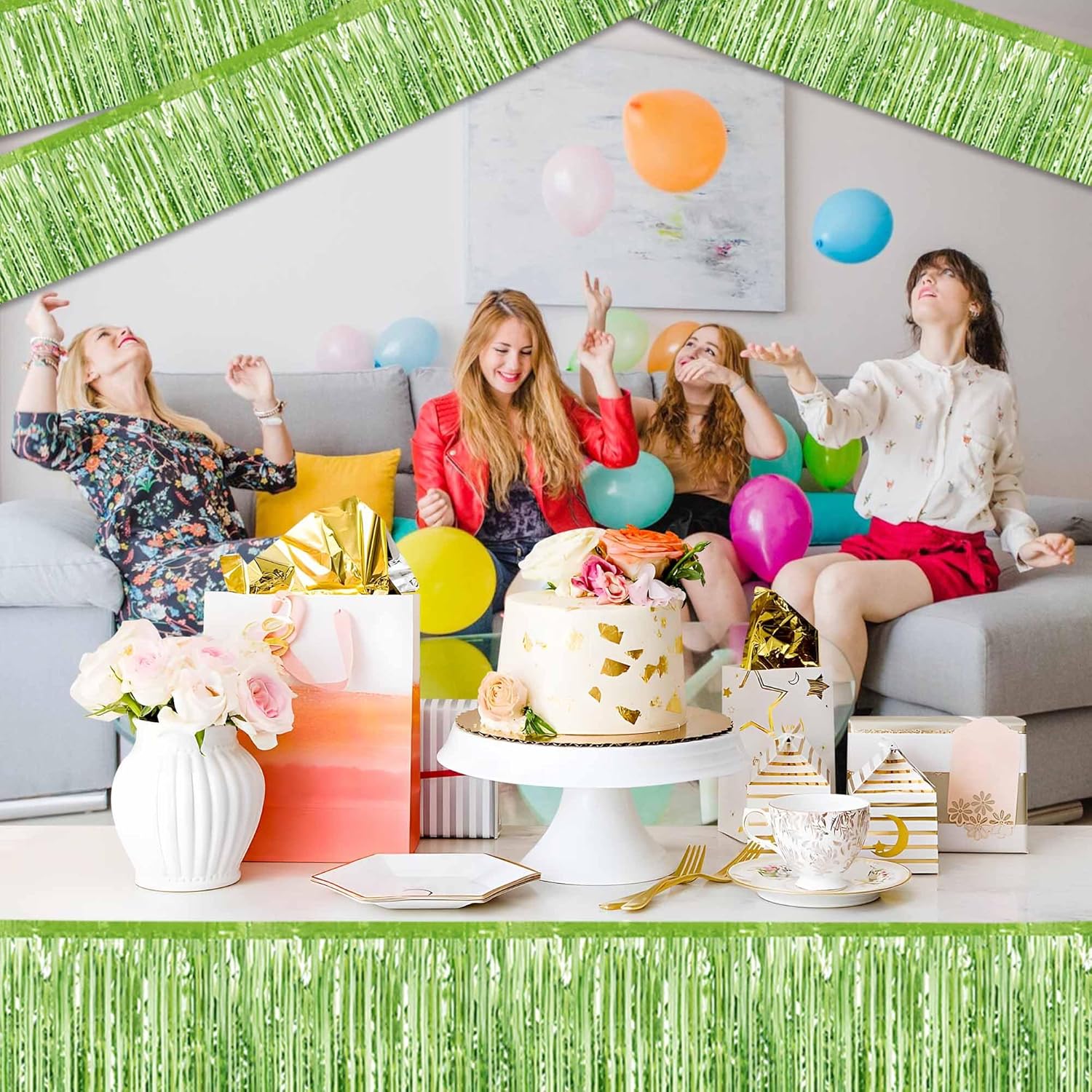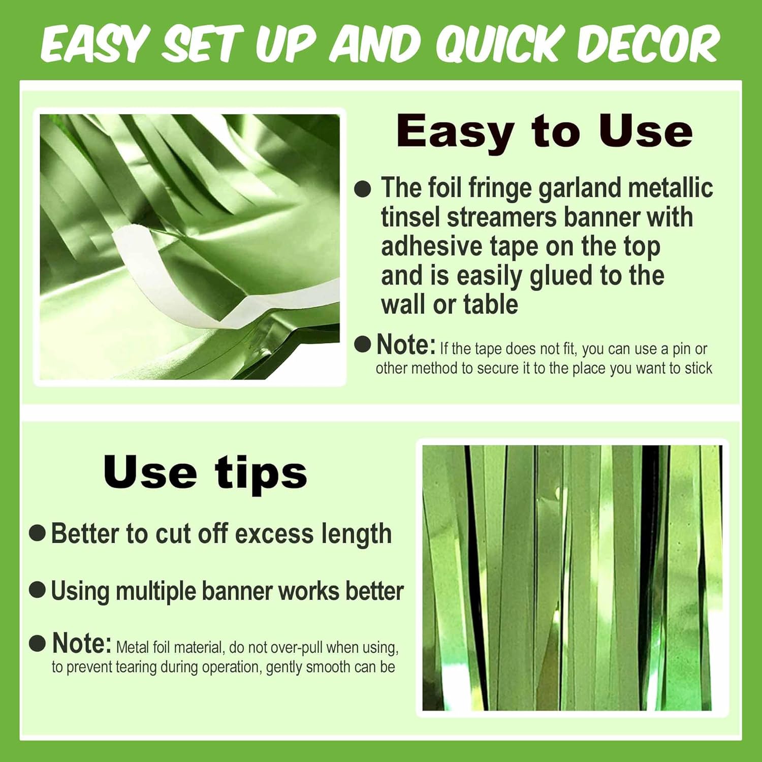 4 Pack 10 Ft Light Green Foil Fringe Garland Metallic Streamers Tinsel Banner Wall Hanging Garland Backdrop for Parade Floats, Halloween, Christmas, Thanksgiving, New Year Party Decorations