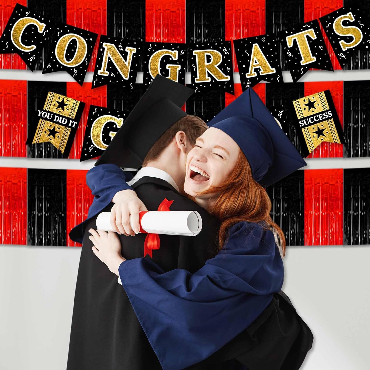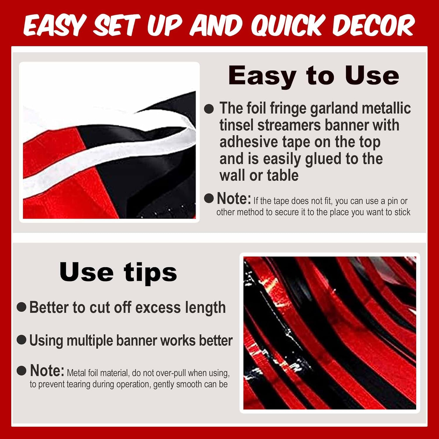 6 Pack 10 Ft Black and Red Foil Fringe Garland Metallic Streamers Tinsel Banner Wall Hanging Garland Backdrop for Parade Floats, Halloween, Christmas, Thanksgiving, New Year Party Decorations