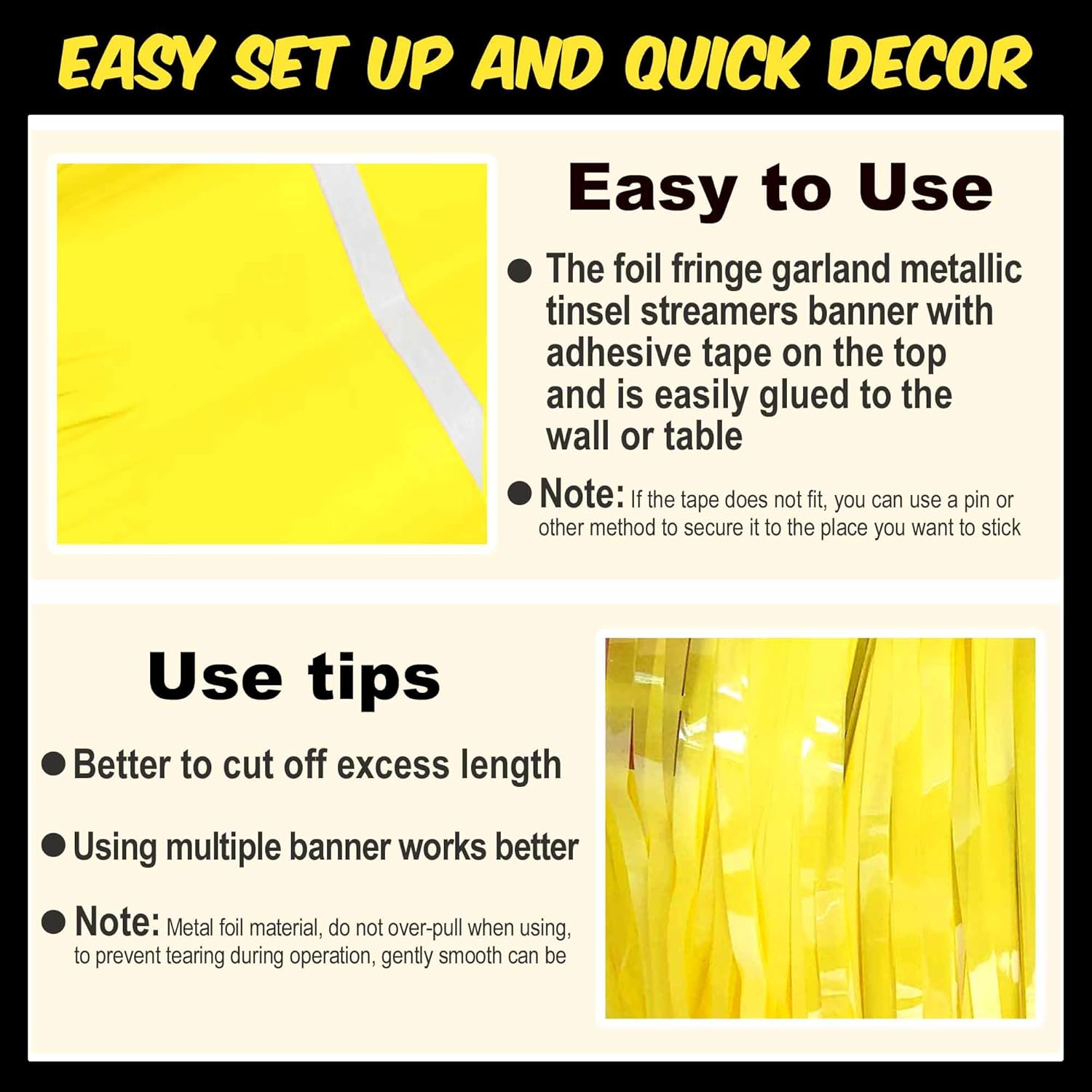 6 Pack 10 Ft Macaron Yellow Foil Fringe Garland Metallic Streamers Tinsel Banner Wall Hanging Garland Backdrop for Parade Floats, Halloween, Christmas, Thanksgiving, New Year Party Decorations